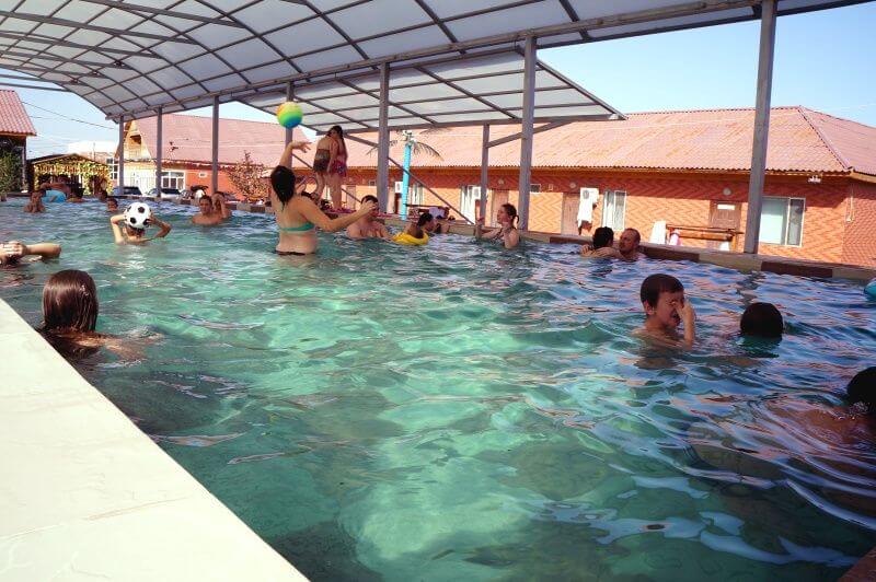 There are seven pools with thermal water on the territory, the temperature of which reaches 40 degrees. Pools for every taste: three open, 2 closed for adults and children, one of which is equipped with slides.