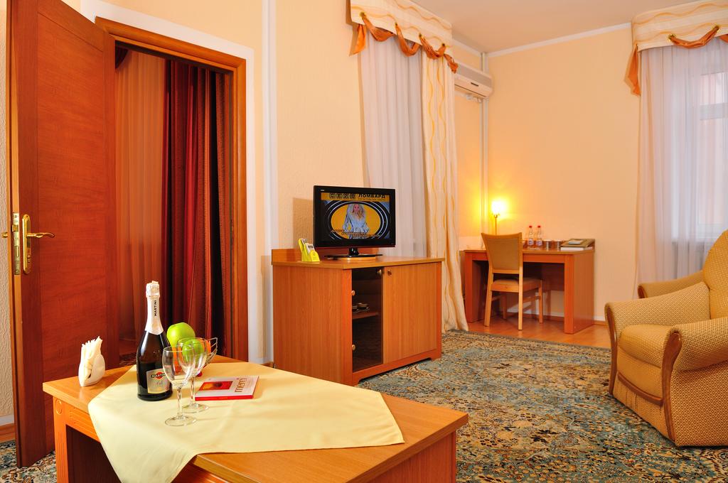 Светлые классические номера оформлены в теплых тонах и оснащены кондиционером, телевизором с плоским экраном, мини-баром и собственной ванной комнатой.
