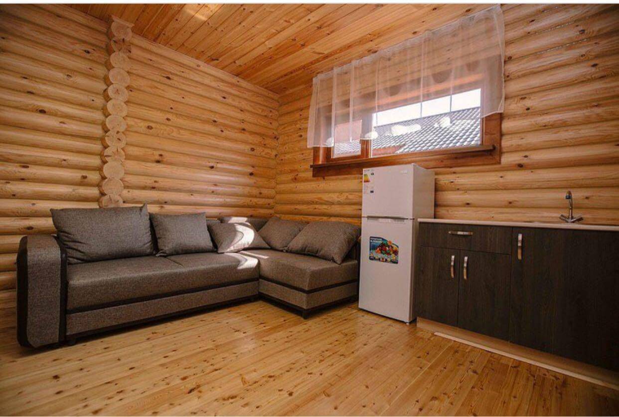 А в кафе-баре из сруба отдыхающих ожидает широкий выбор алкогольных и безалкогольных напитков.