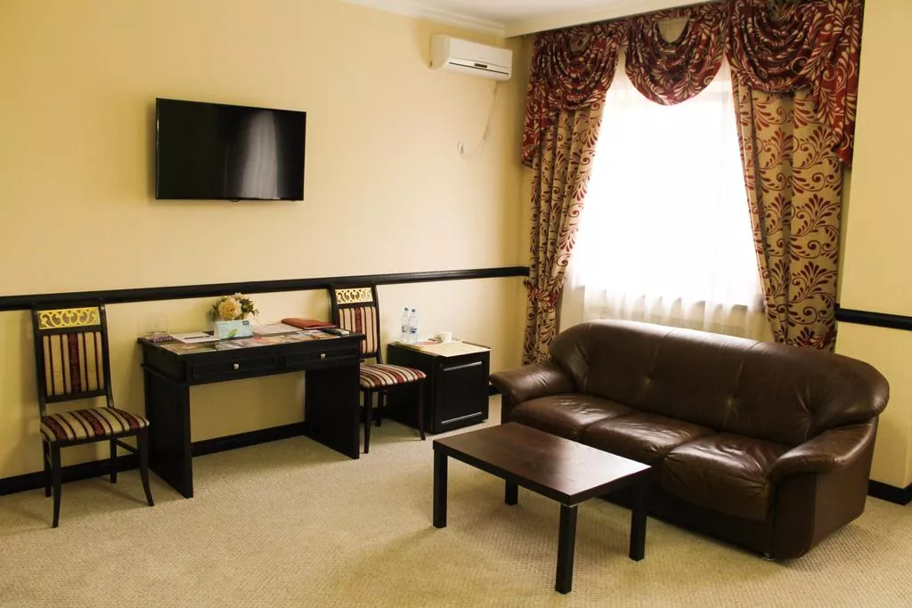 Все светлые номера оформлены в теплых тонах и оборудованы телевизором и холодильником.