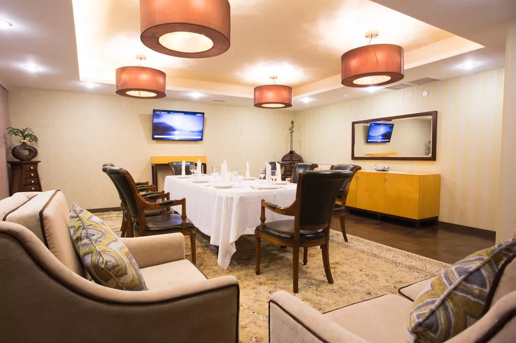 CHABLIS Ресторан на 50 посадочных мест;, HENNESSY бар на 36 мест;, PARADIS VIP зал с караоке 8-12 мест;, 44 номера категории Апартаменты, Люкс, Де Люкс, Стандарт;, 2-ВИП комнаты с кухней и с комнатой отдыха 8-12 мест;, Конференц-зал 30-50 мест;, VIP Трансфер;, Прачечная;, Охраняемый паркинг;, Заказ билетов;, Камера хранения;, Доставка блюд, фуршетов на вынос;, Кейтеринг – выездное обслуживания;, Гибкая система скидок;, Демократичные цены.