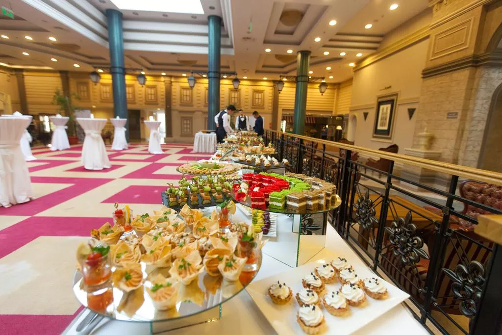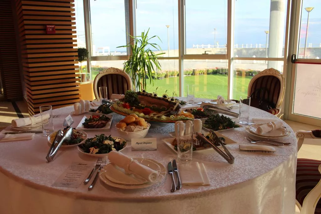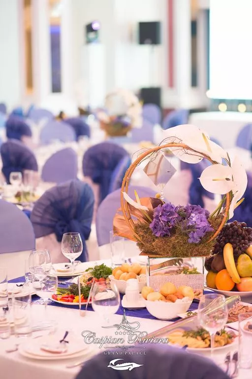 В ресторане отеля Caspian Riviera Grand Palace каждое утро сервируется завтрак «шведский стол». В лаундже и обеденном зале Le Voyage подают обед и ужин. Банкетный зал Riviera вмещает до 250 человек. В круглосуточном лобби-баре можно заказать напитки.
