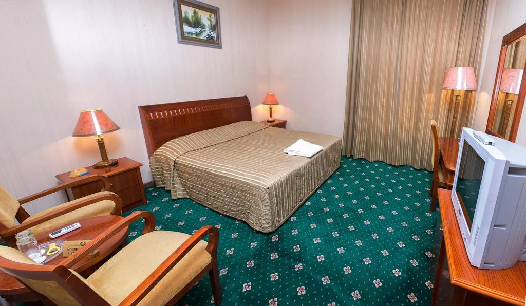 Отель «Де Люкс» с крытым бассейном, фитнес-центром и рестораном находится в центральной части города Усть-Каменогорск.
