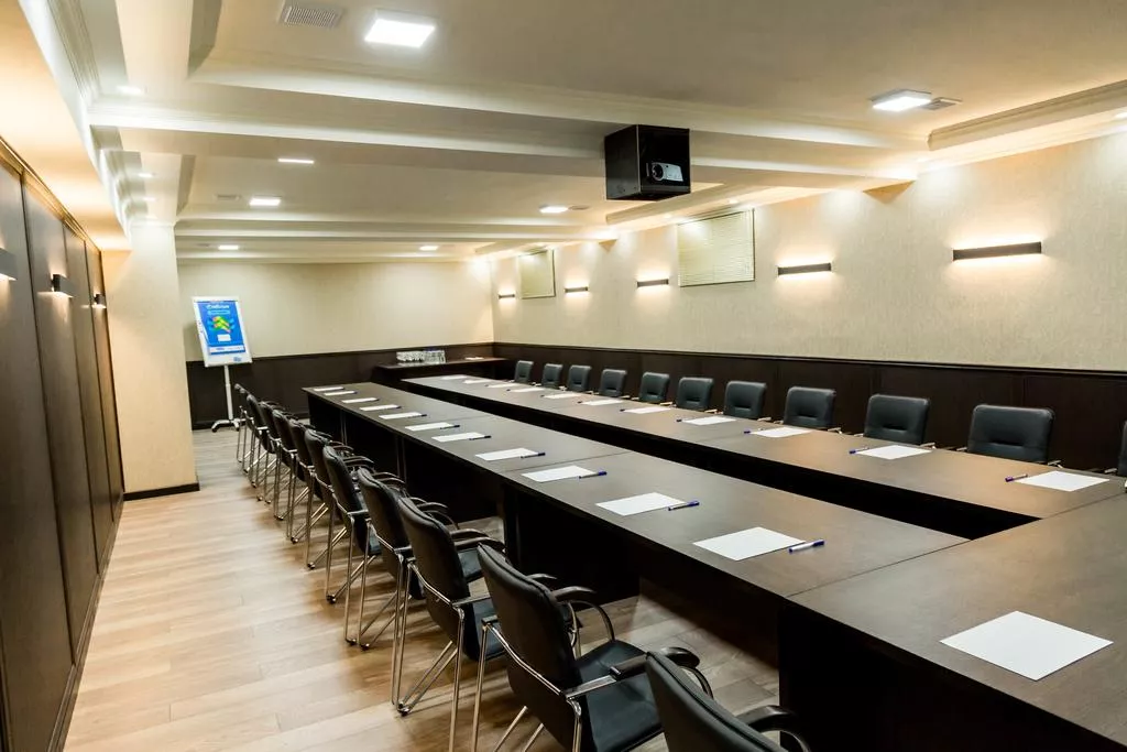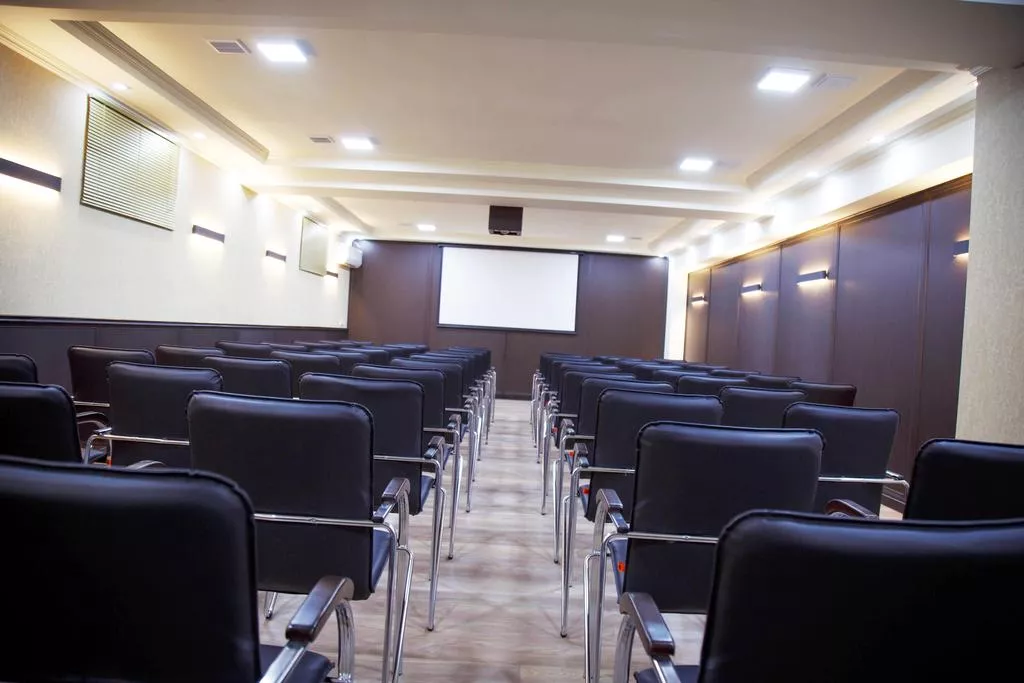 Конференц-зал оснащен кондиционированием/отоплением, звукоизолирующими окнами, большим количеством напольных и настенных розеток. В конференц-зале возможна удобная для вас расстановка кресел в зависимости от формата мероприятия.