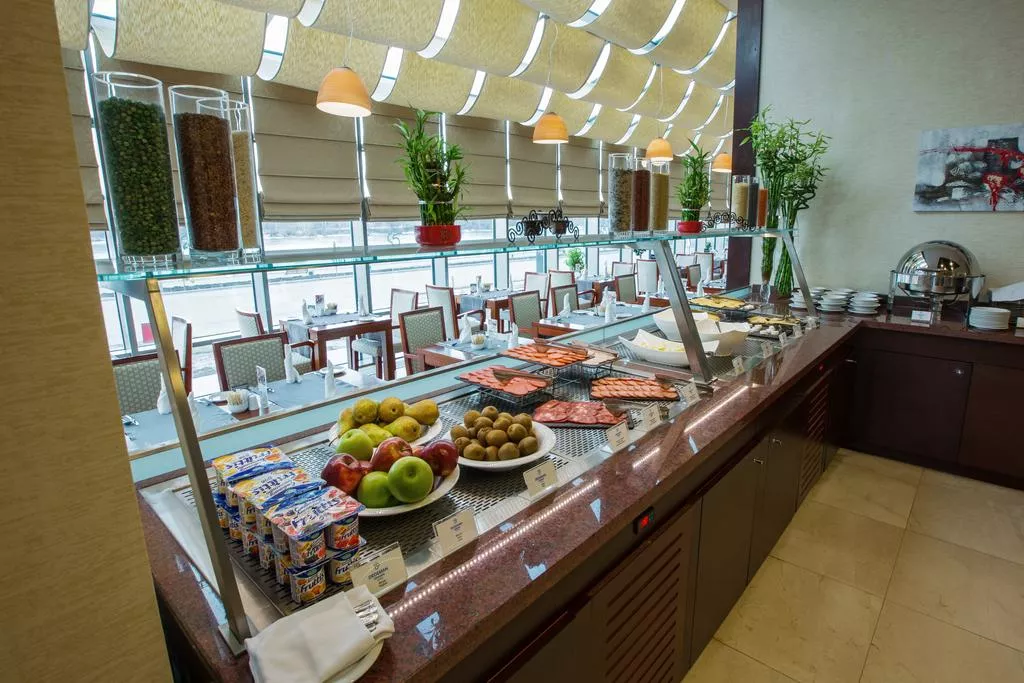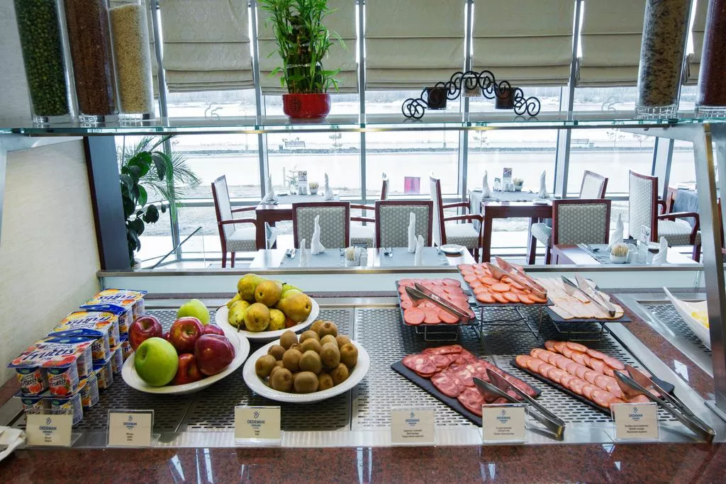В ресторане «Иртыш» подаются блюда интернациональной кухни. В лобби-лаундже можно заказать холодные и горячие напитки. Помимо этого, в отеле оборудованы помещения для проведения встреч и банкетов.