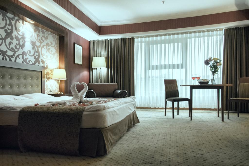 За округлым современным фасадом комплекса гостей ждут стильные классические номера в теплых тонах, из больших окон которых открывается панорамный вид. Во всех номерах есть кондиционер, телевизор с кабельными каналами, гостиная зона и мини-бар. Халат предоставляется бесплатно.