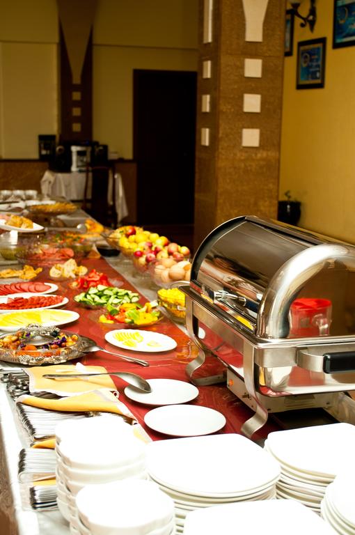 В ресторане подаются блюда казахской и европейской кухни. А в баре можно заказать разнообразные напитки. Каждое утро сервируется завтрак «шведский стол».