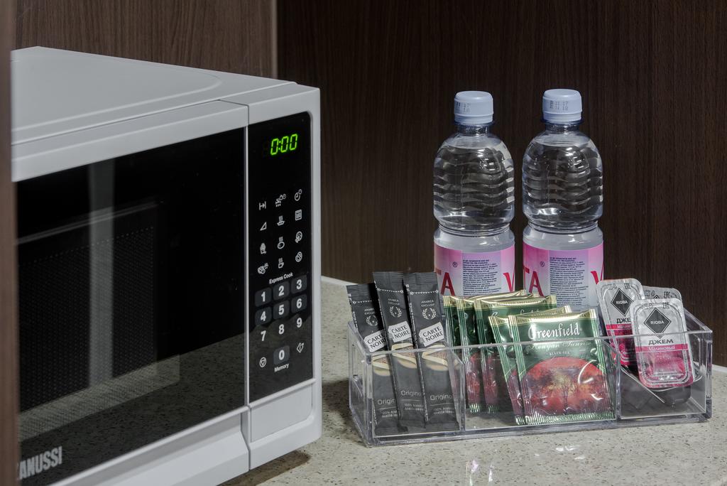 Во всех апартаментах в распоряжении гостей кухня, многоканальное телевидение, гардеробная и письменный стол. Номера оборудованы собственными ванными комнатами, а также электрочайником, кофеваркой и кухонной плитой.До международной выставки «ЭКСПО-2017» — 8 км. Из некоторых апартаментов открывается вид на город.