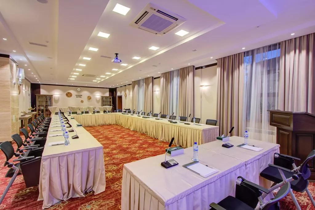 Для проведения бизнес мероприятий отель "Garden Hotel Bishkek" располагает тремя конференц-залами. По запросу организаторов участникам мероприятий могут быть предложены кофе-брейки, обеды, ужины и фуршеты.