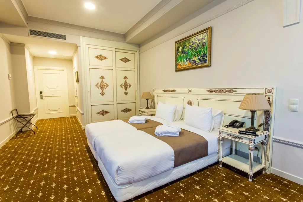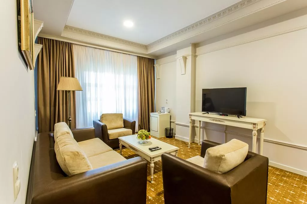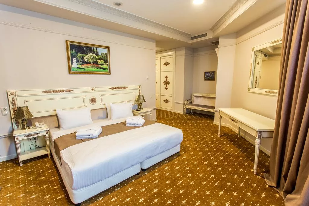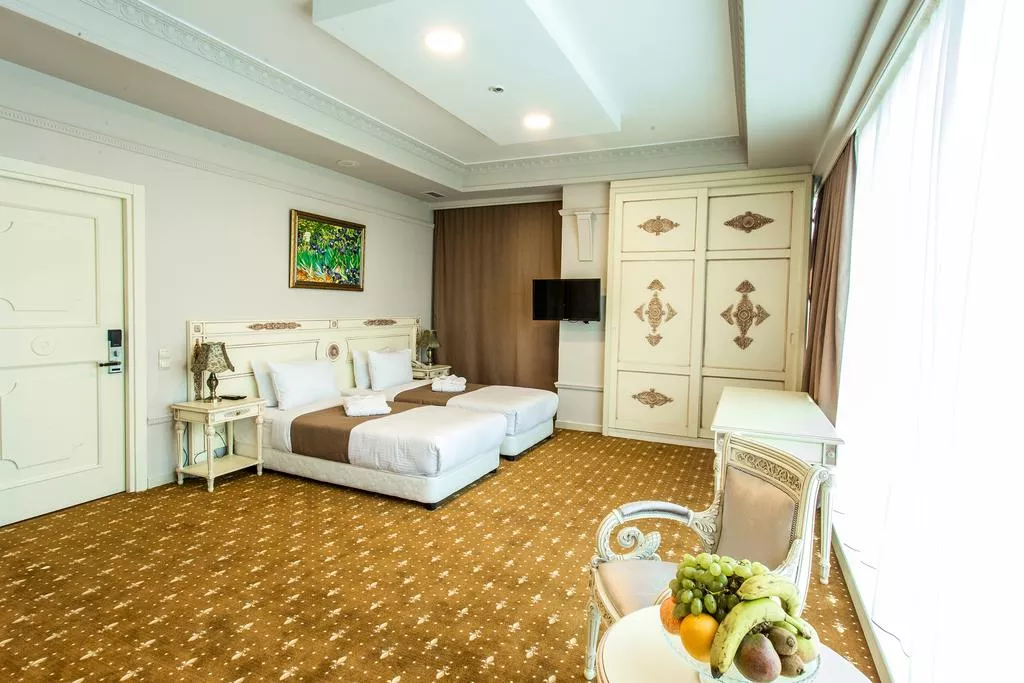 Светлые номера спа-отеля Golden Mir обставлены изысканной мебелью. В числе удобств холодильник, кондиционер и телевизор с плоским экраном. В собственной ванной комнате предоставляется купальный халат, тапочки и бесплатные туалетно-косметические принадлежности.