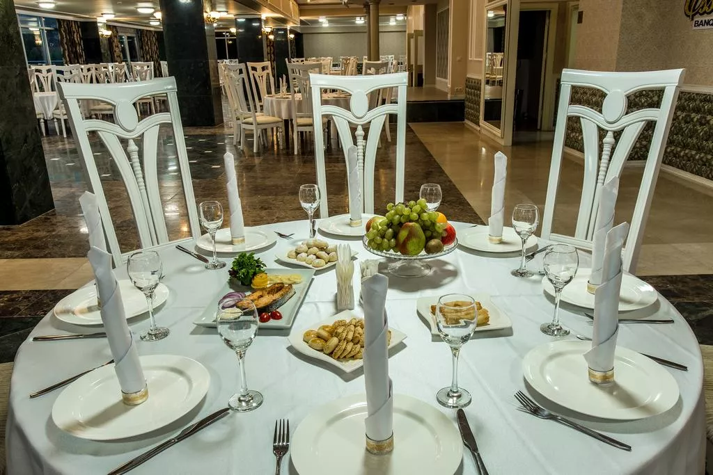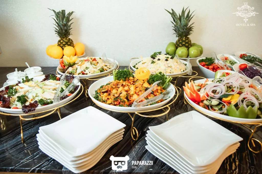 В ресторане спа-отеля Golden Mir по утрам подают завтрак «шведский стол», а вечером блюда европейской кухни и местные казахские блюда. Гости могут посетить бар и отдохнуть на террасе для загара.