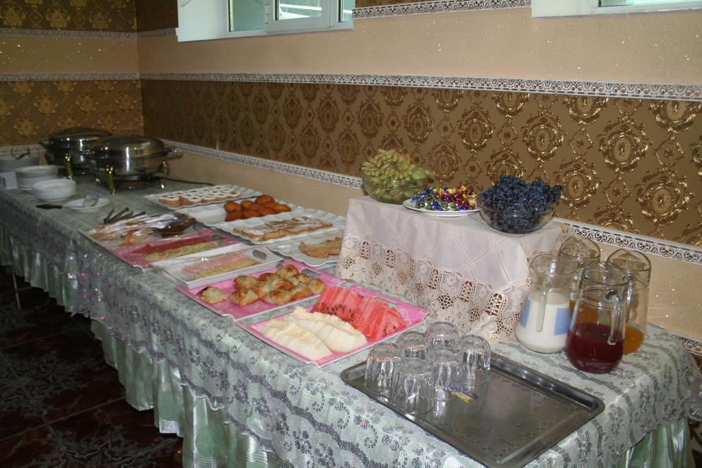 Каждое утро для гостей накрывают завтрак. В ресторане «Идеал», расположенном через дорогу, можно отведать узбекские и европейские блюда на обед и ужин. Летом напитки и фрукты подаются у фонтана. Гостям бесплатно предоставляются чай, кофе и безалкогольные напитки.