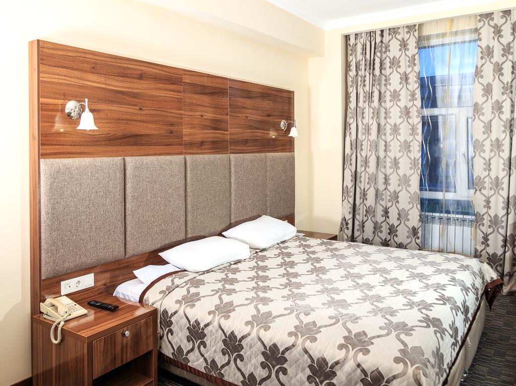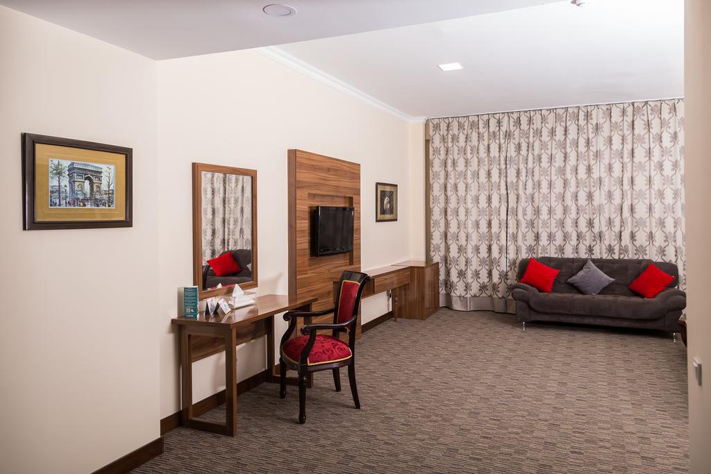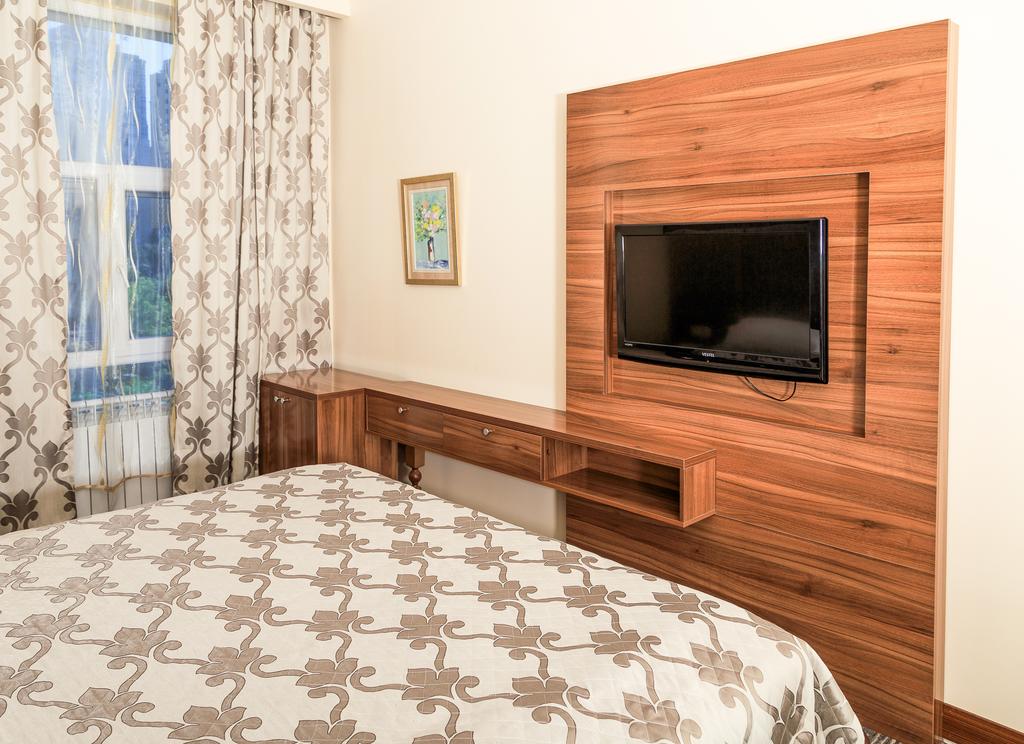 Все светлые номера гранд-отеля "Евразия" оснащены телевизором и телефоном, а в собственной ванной комнате предоставляются халаты, туалетно-косметические принадлежности и фен.