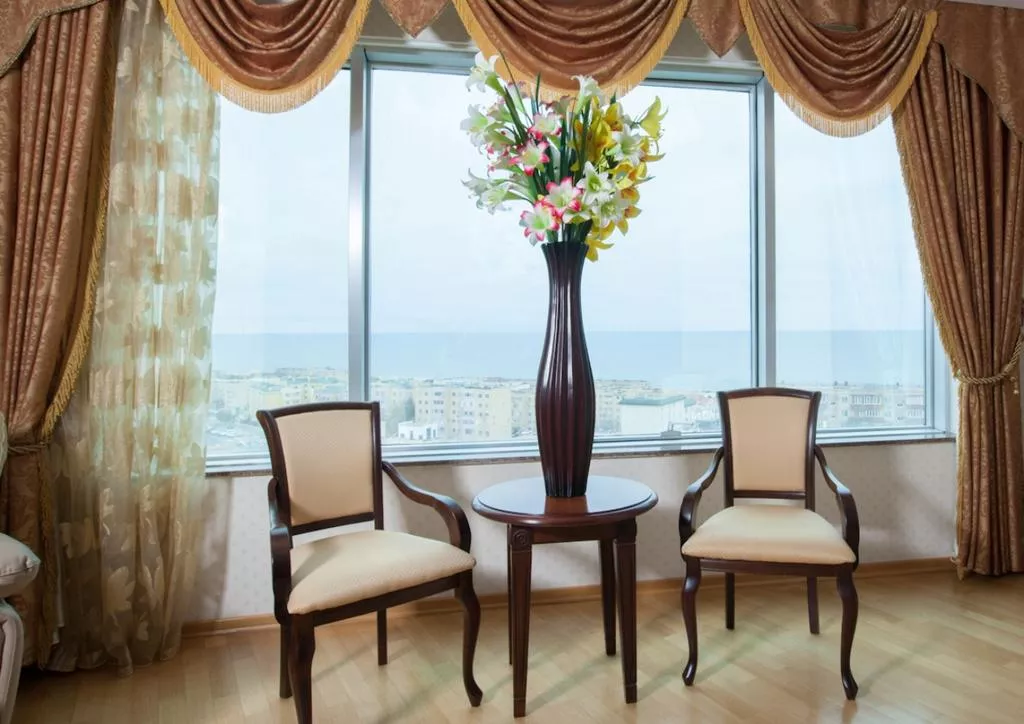 Этот 5-звездочный отель находится в центре города Актау, всего в 500 метрах от побережья Каспийского моря. К услугам гостей спа-центр с бассейном и тренажерным залом, а также бар, из которого открывается панорамный вид.
