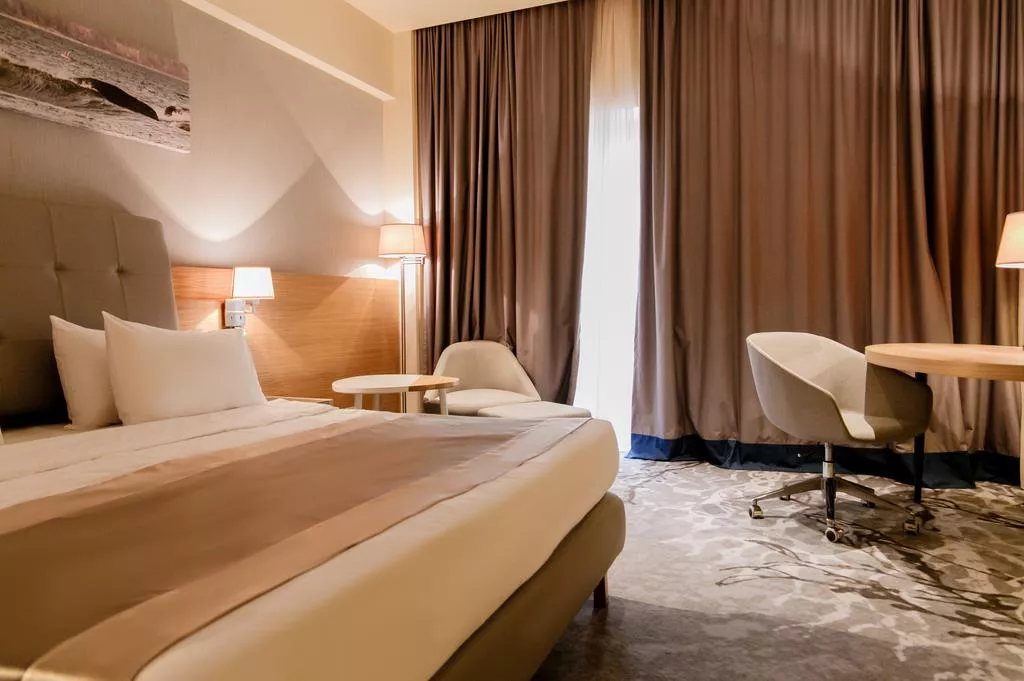 In addition, after a long day of work or sightseeing, you can visit our indoor pool with sauna or work out in the gym! The hotel has several summer outdoor pools and stunning views of the sunsets.