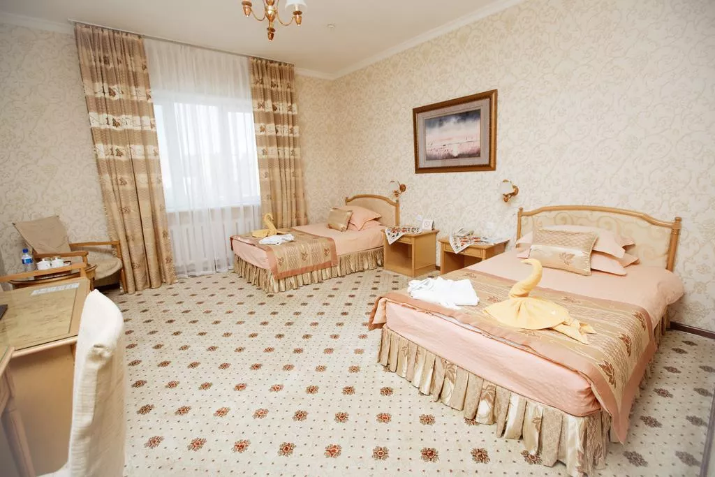 В уютной атмосфере нашего ресторана и бара, Вам и Вашим гостям будет предложен большой выбор блюд европейской и национальной кухни, широкий ассортимент спиртных и прохладительных напитков. Вместимость ресторана – 170 мест, бара – 35 мест. Завтрак и ужин сервируются по типу “шведский стол”: завтрак с 07-00 до 10-00, ужин с 19-00 до 23-00. Ресторан оказывает услуги по доставке еды и напитков прямо в номер, при необходимости собирает ланч-боксы, есть возможность предварительного заказа обедов и ужинов. Для желающих устраивается мастер-класс по приготовлению национальных блюд. Живая музыка и шоу-программы организуются по заказу!