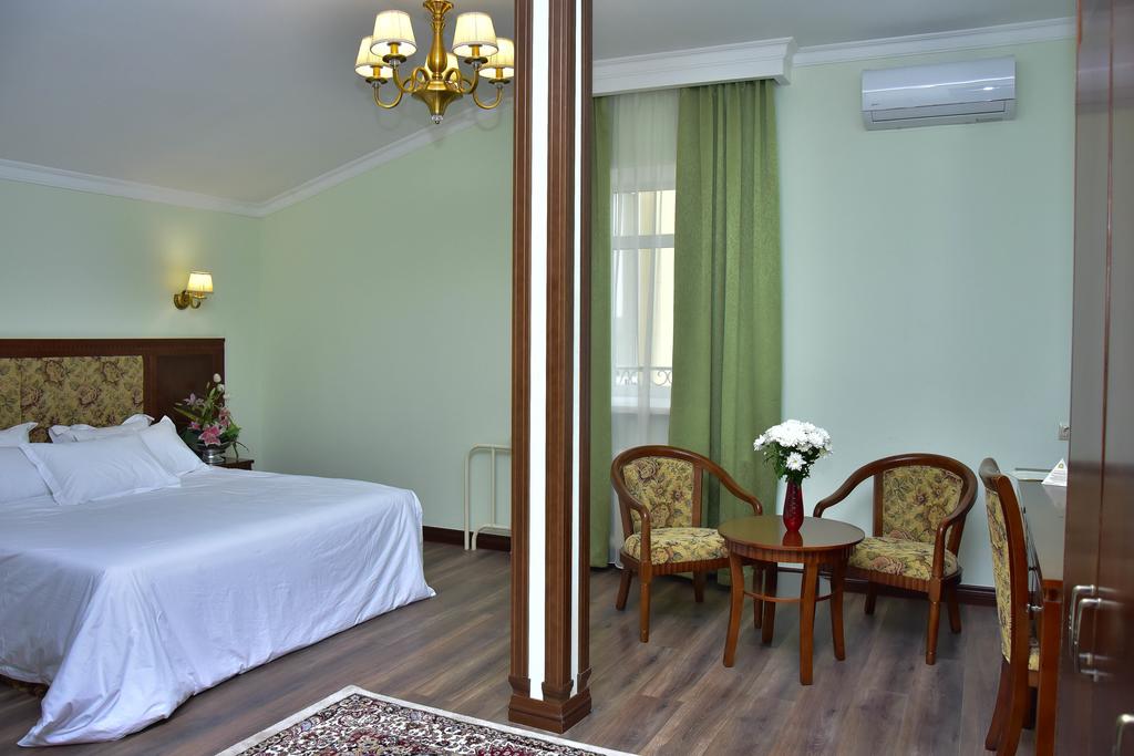 Круглосуточное обслуживание номеров, Услуги прачечной, Услуги питания, Транспортные услуги по встрече и проводам в аэропорт и ж/д вокзалы г. Алматы, Бесплатный доступ в Интернет, Электронная почта, копирование, сканирование, факс, Кондиционер, Спутниковое телевидение, Фен, набор аксессуаров и банных принадлежностей, Продажа сувениров, Бар, Кафе