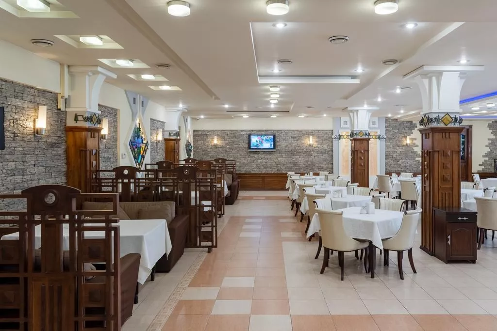 Guests can visit the Level Night Bar or the colorfully decorated restaurant, serving Kyrgyz and European dishes. A buffet breakfast is served here every morning, and a variety of drinks are offered at the lobby bar.