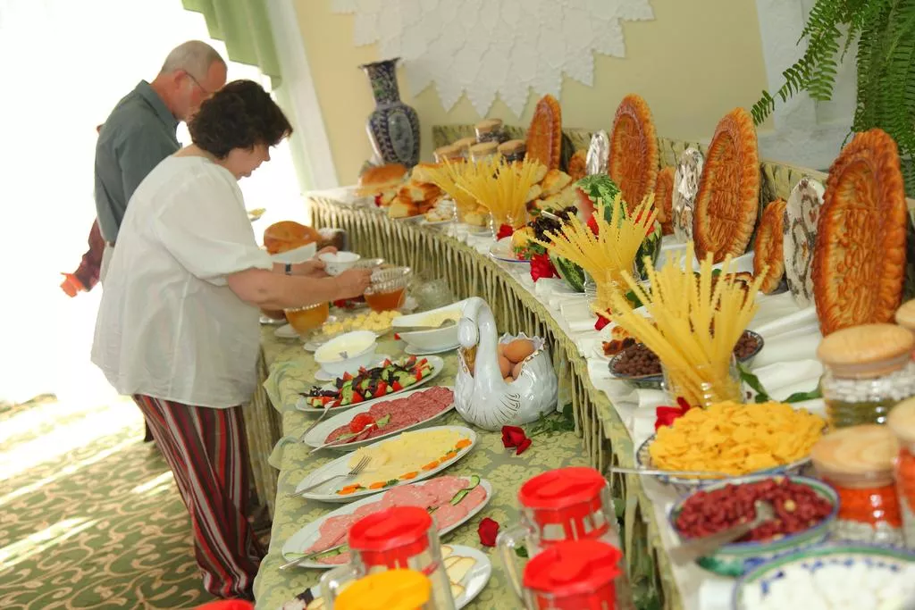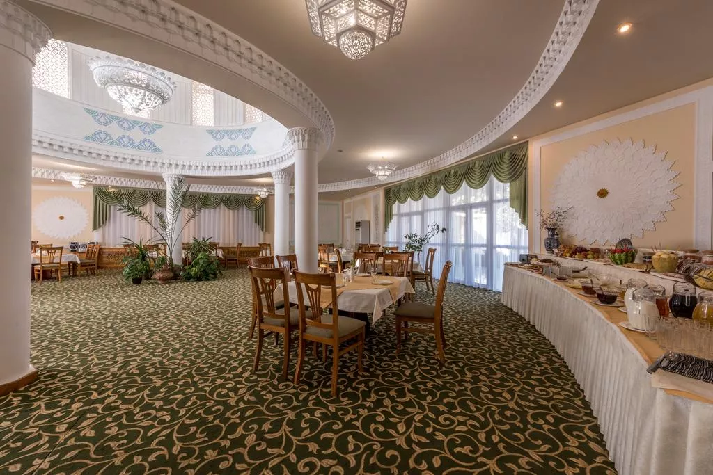 В ресторане отеля накрывают завтрак, а также подают блюда европейской и региональной узбекской кухни. Доставка еды и напитков в номер производится круглосуточно. Кроме того, в баре отеля представлен большой выбор напитков.