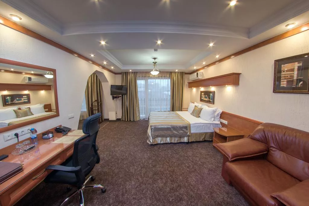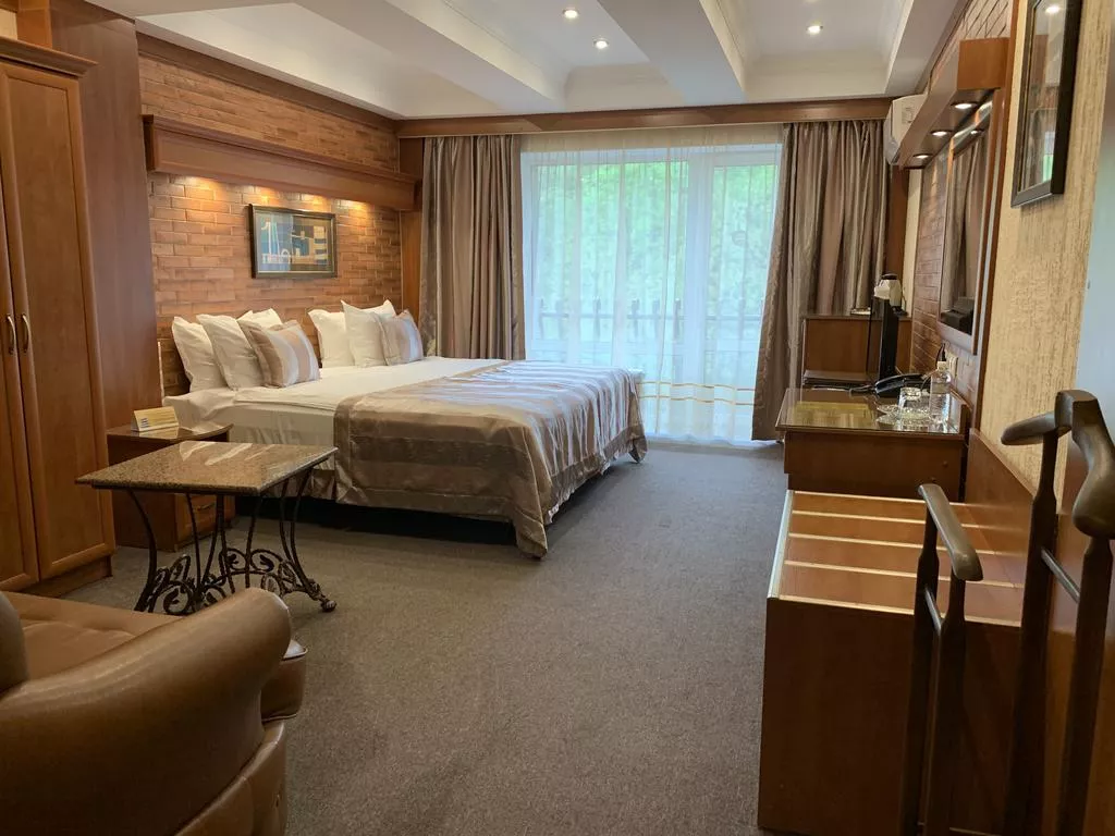 номерной фонд гостиницы – это 115 просторных номеров (категории стандарт, комфорт де люкс, полулюкс и люкс) в европейском стиле, оснащенных не только всей необходимой техникой (телевизор с программами спутникового вещания, DVD-плейер, кондиционер, фен, мини-бар, сейф и пр.) и эргономичной мебелью, но и системами охранной/пожарной сигнализации;