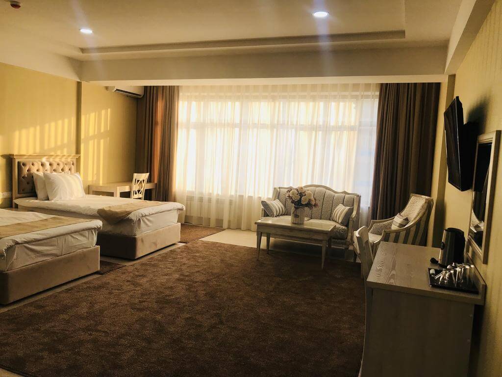 Этот 4-звездочный отель находится в 5 минутах езды от памятника Амиру Тимуру в Ташкенте. К услугам гостей бесплатный Wi-Fi, открытый бассейн и номера с кондиционером и холодильником.