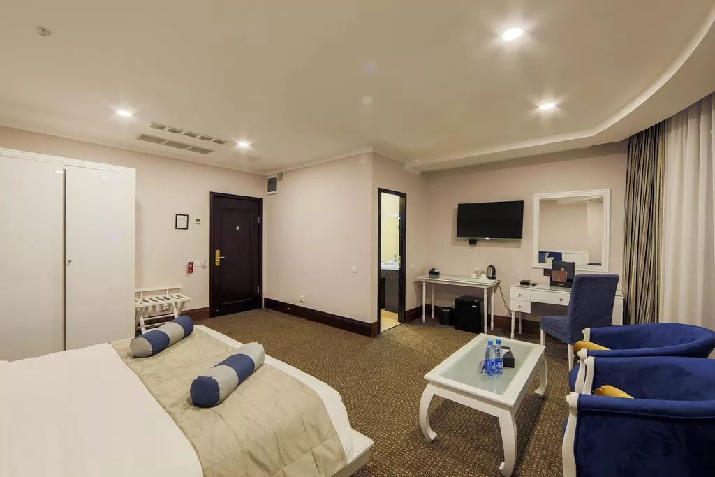 Светлые номера оснащены кондиционером, телевизором с плоским экраном, сейфом и мини-баром. В ванной комнате предоставляются бесплатные туалетно-косметические принадлежности, тапочки и банные халаты.