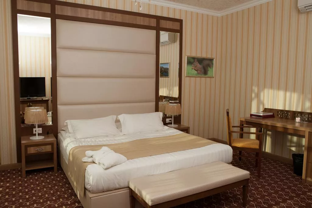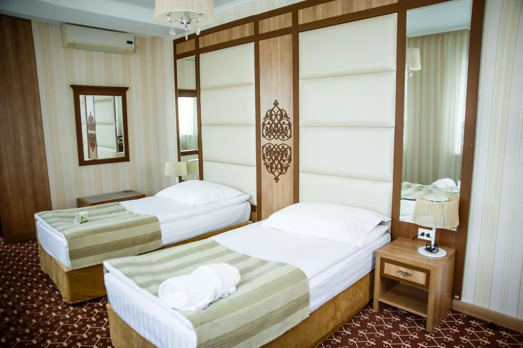 Просторные номера отеля «Жумбактас Астана» оформлены в изысканном стиле, в светлых тонах. В числе удобств кондиционер, телевизор с плоским экраном, мини-бар и собственная ванная комната.