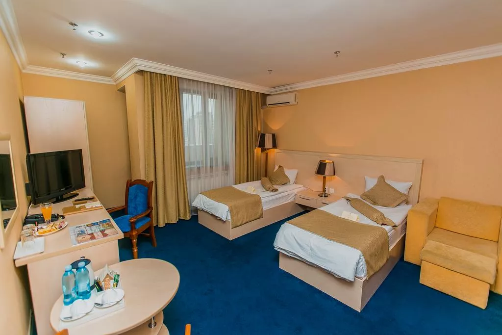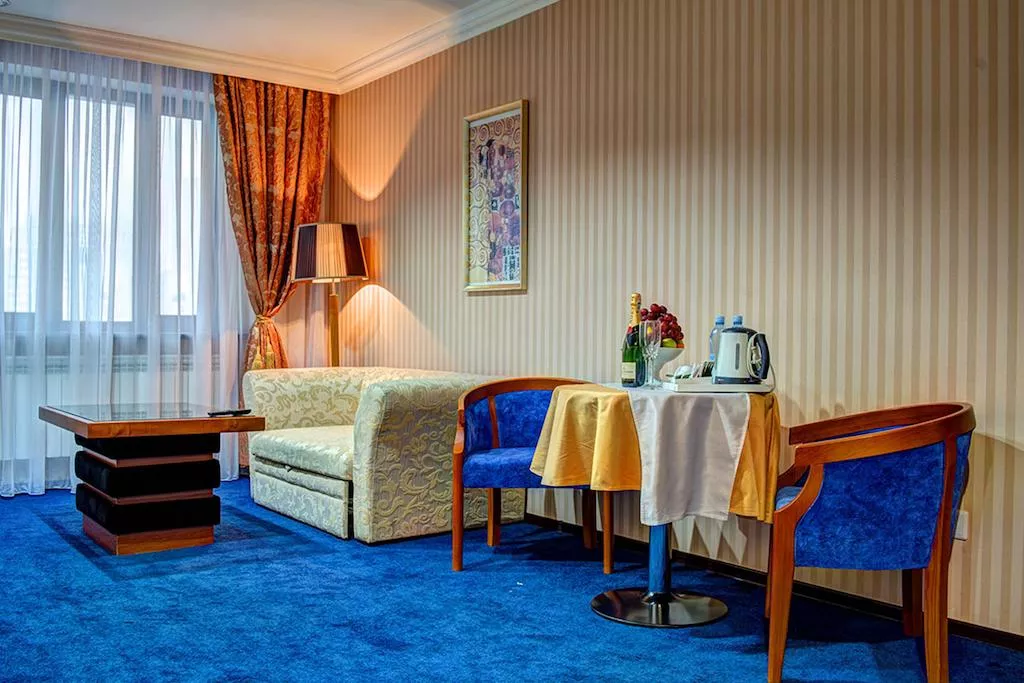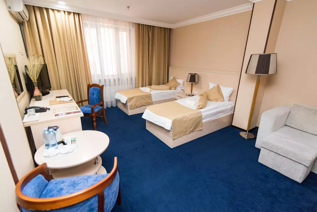В числе удобств некоторых номеров и люксов отеля King Astana мини-бар и/или гидромассажная ванна. Большие окна и теплая цветовая палитра создают в номерах уютную атмосферу.