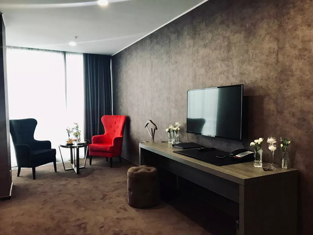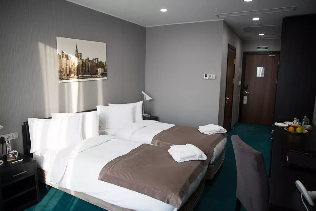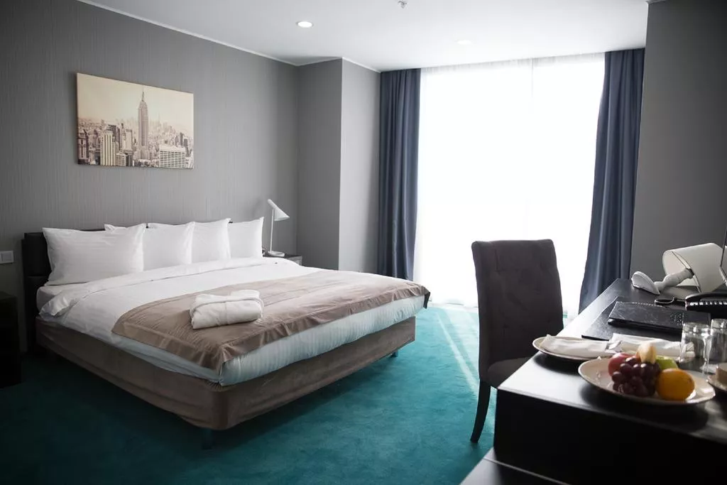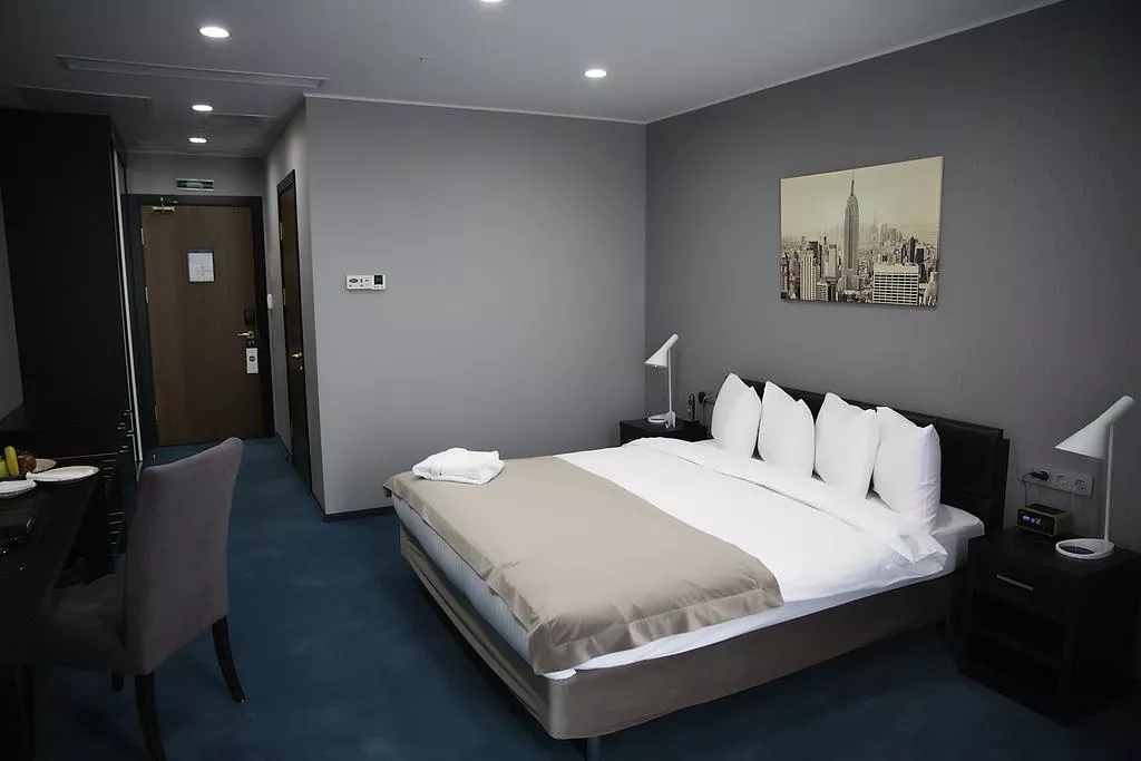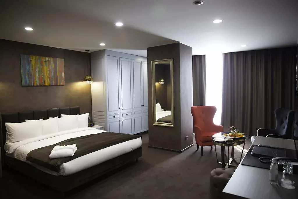 Гармонично спланированное помещение каждого номера "Делюкс" включает в себя комфортабельную двухместную кровать, плазменный телевизор 43 дюйма, стол, тем самым обеспечивая комфортное пребывание в бутик-отеле. Максимальную тишину в номерах обеспечивает качественная звукоизоляция.