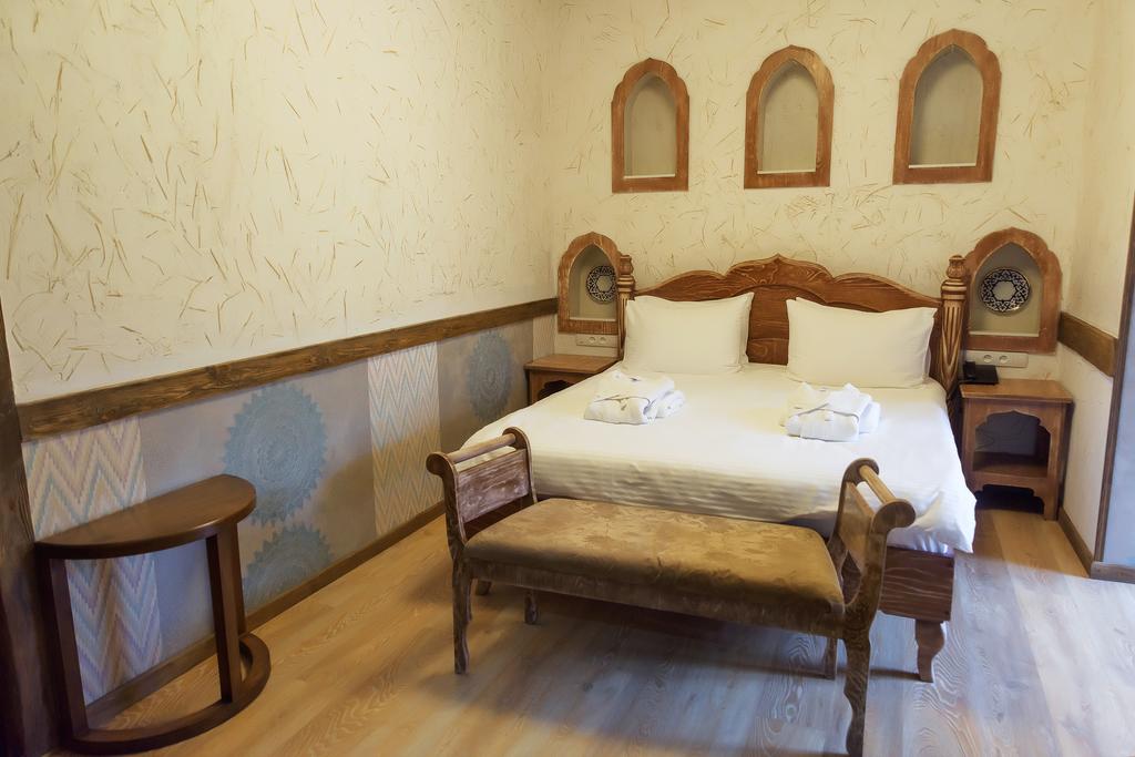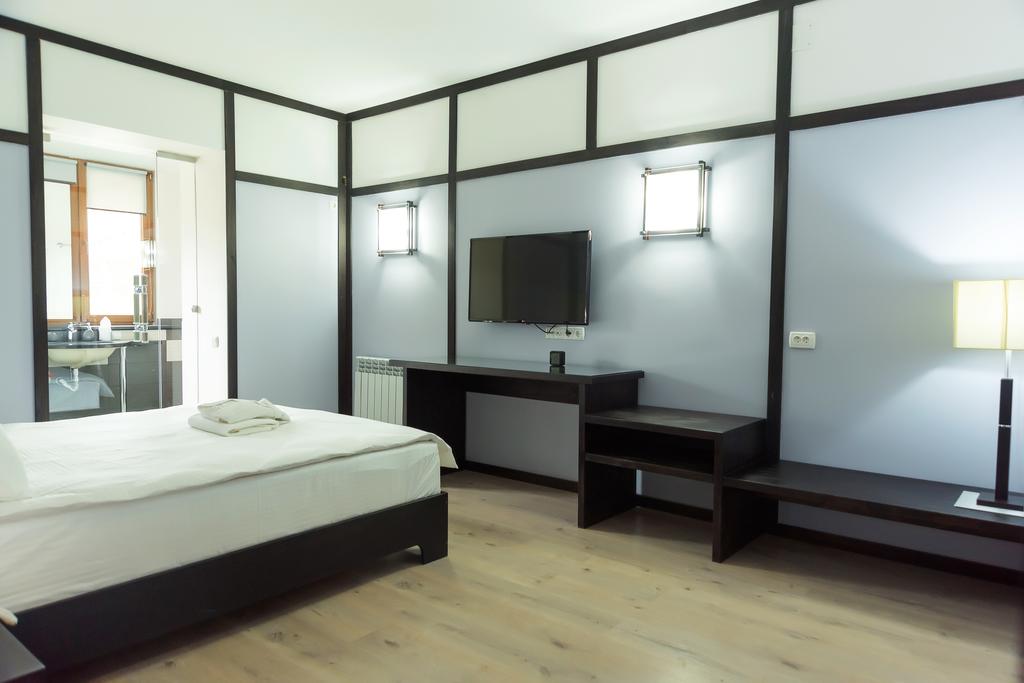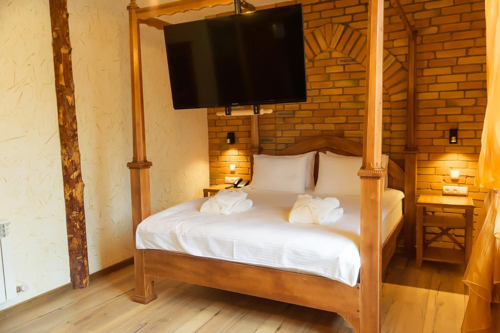 Интерьер номеров бутик-отеля «Орбита» оформлен в загородном стиле, который гармонично дополняет деревянная мебель. Все номера оснащены холодильником и телевизором с плоским экраном с каналами спутникового телевидения, а также укомплектованы купальными халатами и туалетно-косметическими принадлежностями.