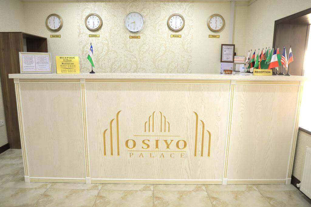 Отель Osiyo Palace расположен в Ташкенте. К услугам гостей сад, бар, общий лаундж и терраса. К услугам гостей ресторан, круглосуточная стойка регистрации и бесплатный Wi-Fi. Осуществляется доставка еды и напитков в номер. Гости могут воспользоваться услугами билетной кассы, экскурсионного бюро и пункта обмена валюты.