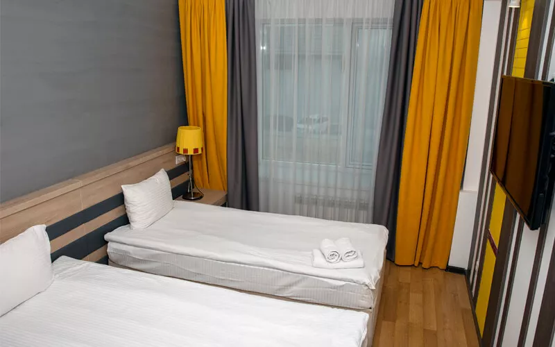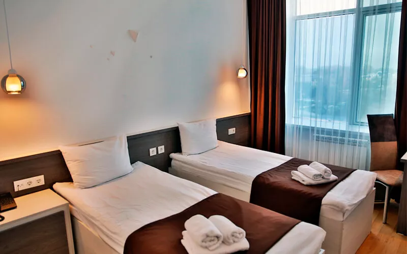 Отель располагает 80 комфортабельными, чистыми и очень уютными номерами, в которых есть все удобства для приятного проживания в нашем отеле. Вам очень понравится обстановка и номера, которые обставлены новой мебелью. Все номера прошли обновления.