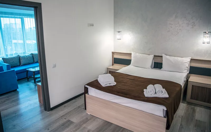 В каждом номере имеется бесплатный интернет WI-FI, стол со стулом, приятная и просторная кровать, мини-бар, персональный сейф, шкаф, ТВ на 55 каналов с большим телевизором, с замечательным освещением, новые кондиционеры. Также имеется горячая вода. Выдаются халат, тапочки, полотенце, принадлежности для душа, в зависимости от категории номера.