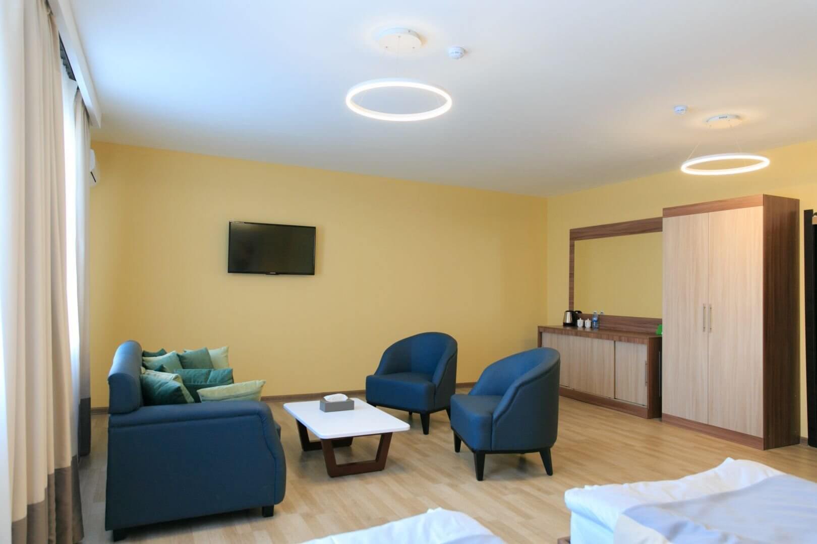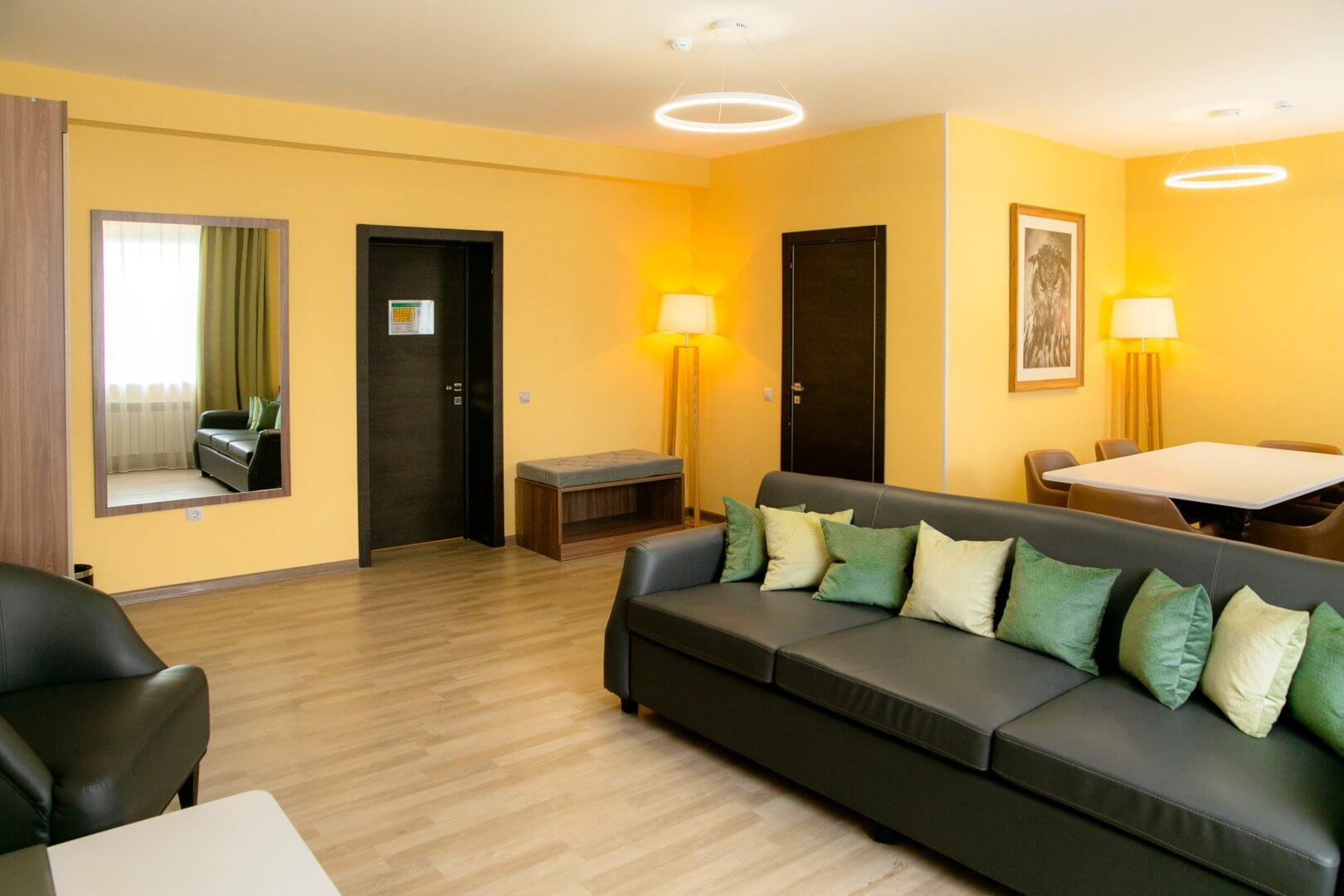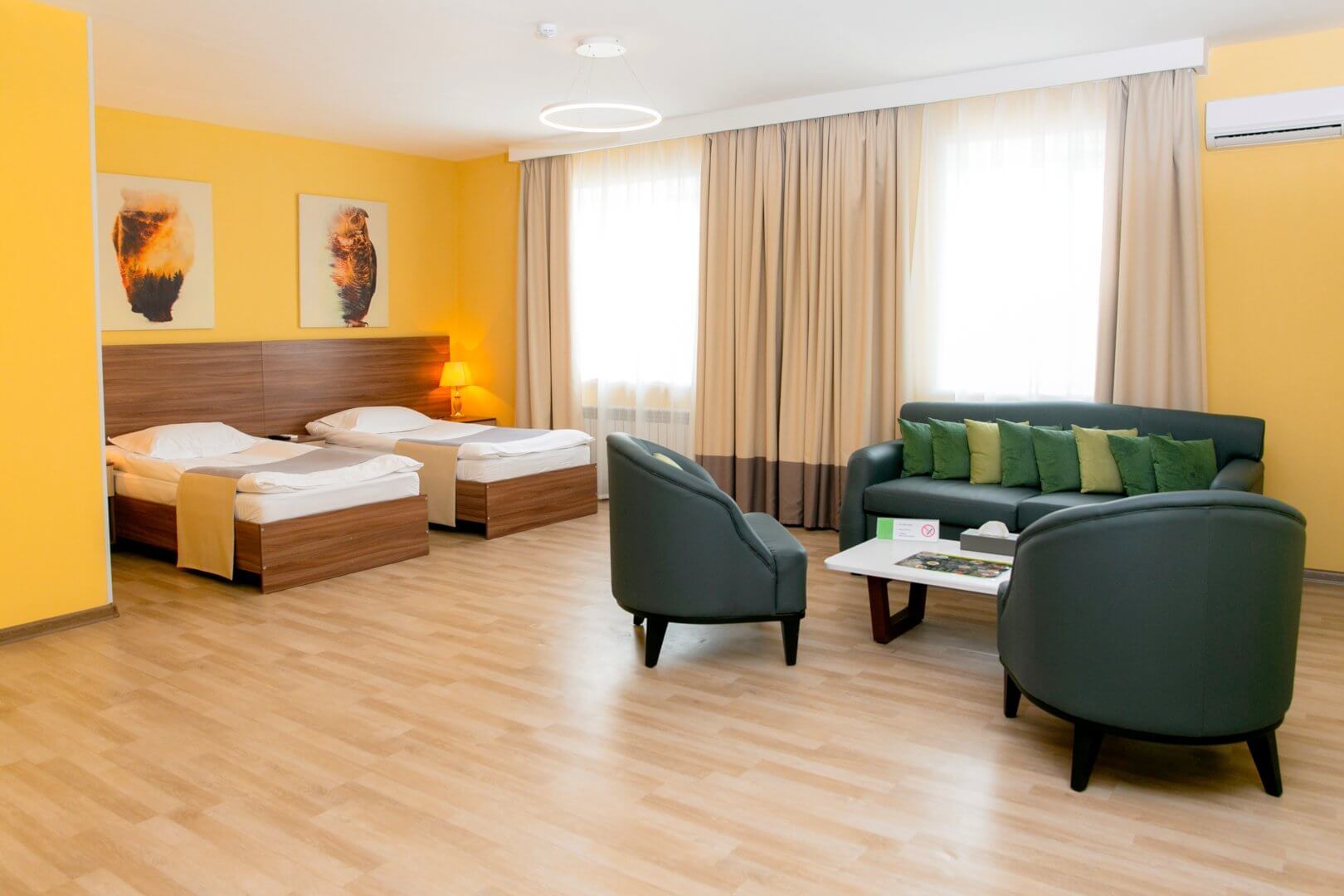 Категории номеров начинаются от одноместного стандарта до люкса. Концепция отеля включает в себя экологичность использованных материалов при постройке. Все номера меблированы и обставлены техникой. К телевизору подключены спутниковые каналы.