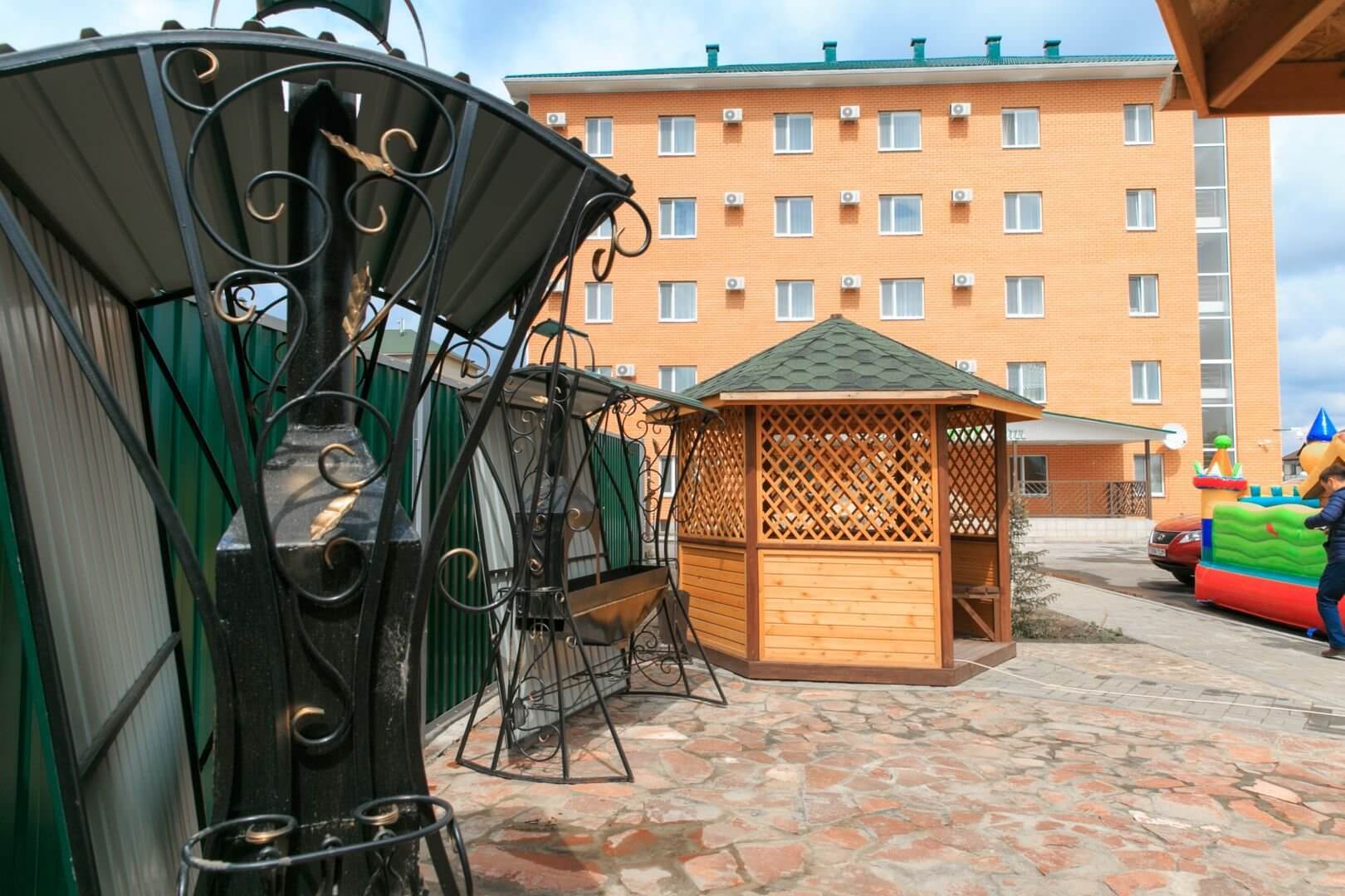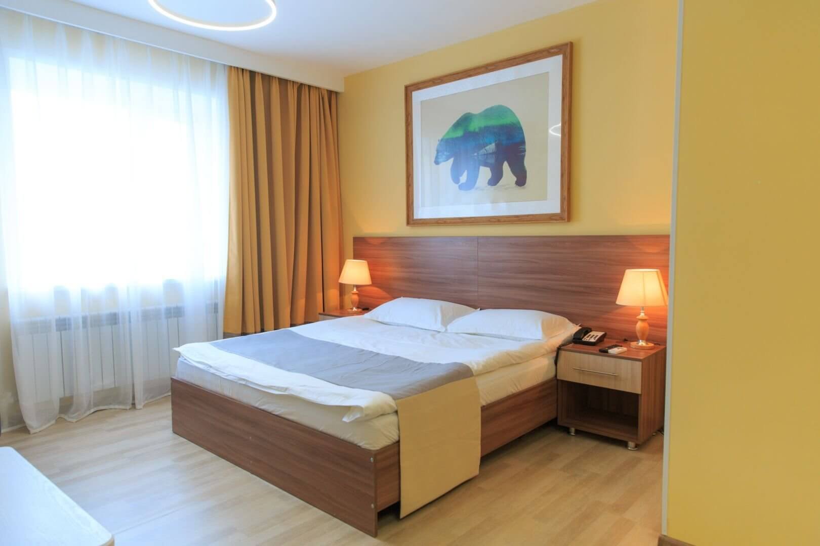 Отель «Де Люкс» с крытым бассейном, фитнес-центром и рестораном находится в центральной части города Усть-Каменогорск.