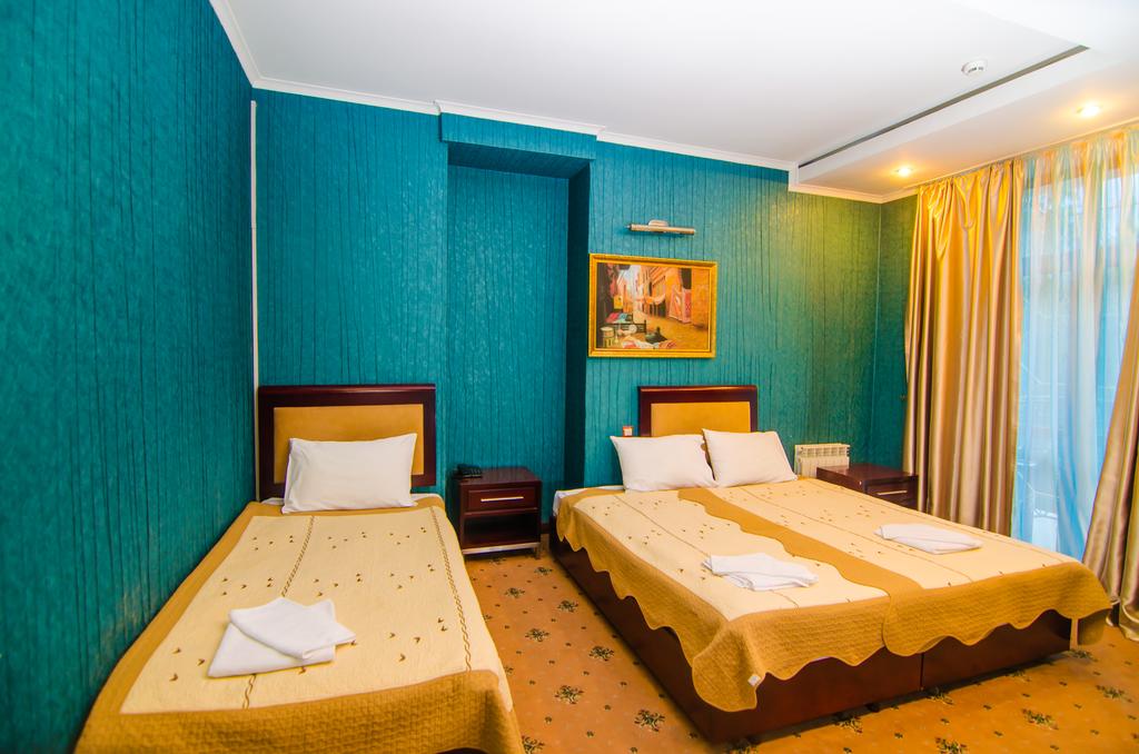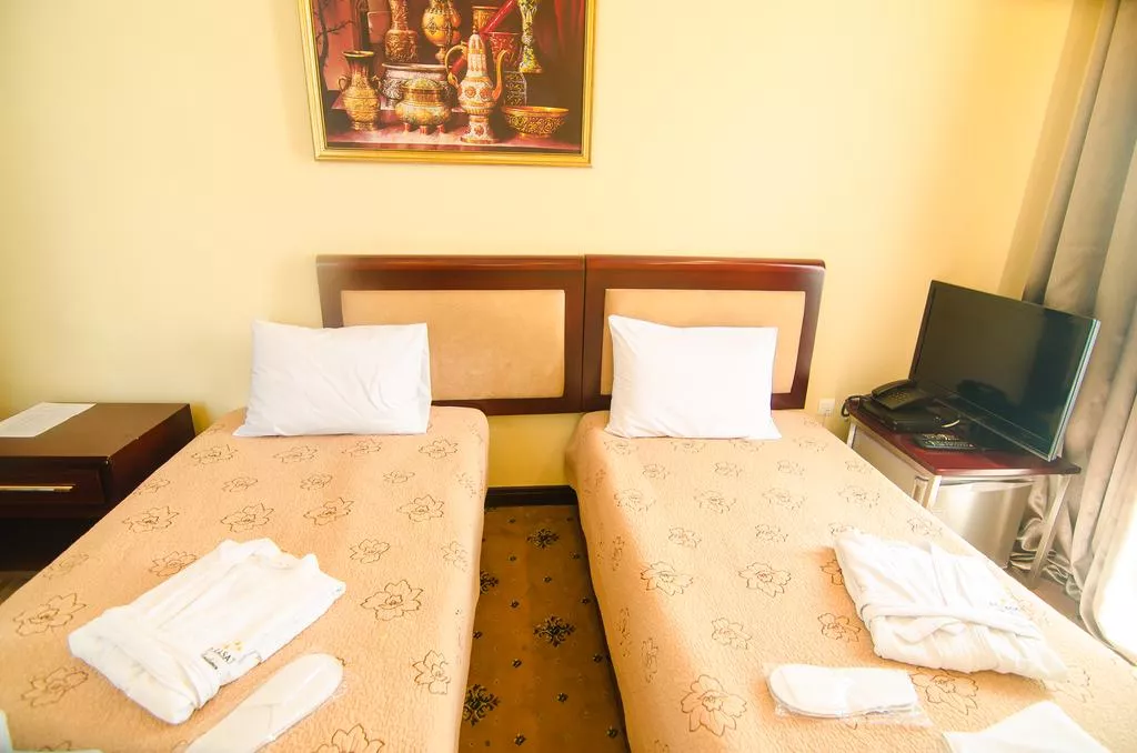 В номерах отеля предусмотрены все удобства для наших гостей. В каждой категории комнат имеется душевая, фен, банные принадлежности, спутниковое ТВ, интернет WiFi. Гости также могут посетить бассейн и сауну отеля, а также заказать в номер блюда и напитки из меню ресторана отеля.