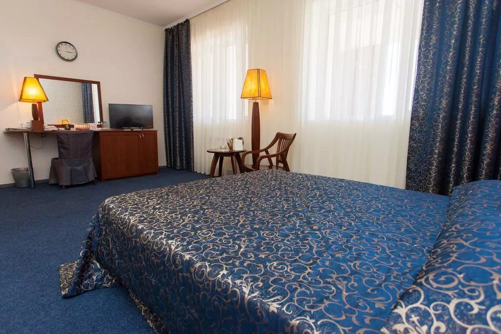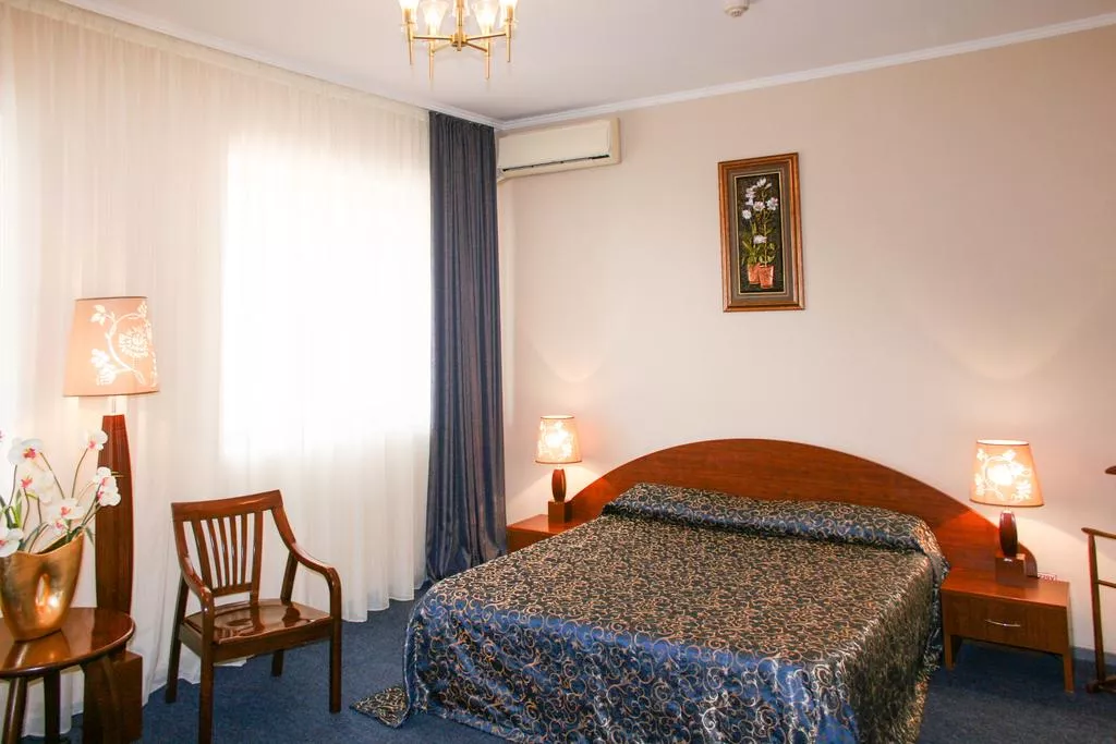 Отель «Де Люкс» с крытым бассейном, фитнес-центром и рестораном находится в центральной части города Усть-Каменогорск.