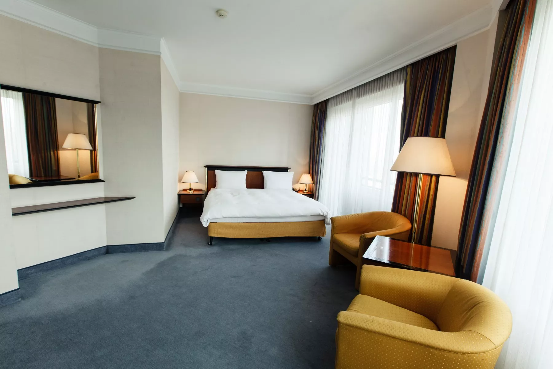 Все номера в отеле оборудованы с применением новейших технологий, идеально подходит для деловых поездок. Каждый номер очарует вас своей просторностью, чистотой и классическим стилем, в дизайне которого использовалось настоящее дерево и мрамор. Все номера оснащены кондиционером, телевизором с плоским экраном, сейфом, мини-баром, балконом и ванной комнатой.