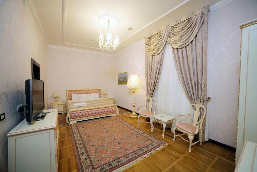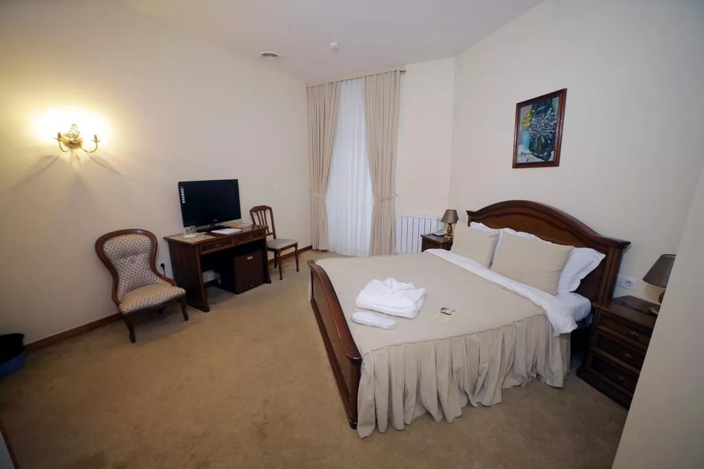 К услугам гостей 70 номеров в Гостинице и 50 номеров высшей категории в Резиденции, выполненных в теплых тонах. В номерах имеются телефонная связь, круглосуточный румсервис, спутниковое телевидение, мини-бар и беспроводной WI-FI интернет. Во всех номерах установлены системы кондиционирования воздуха, а номера люкс оснащены джакузи.