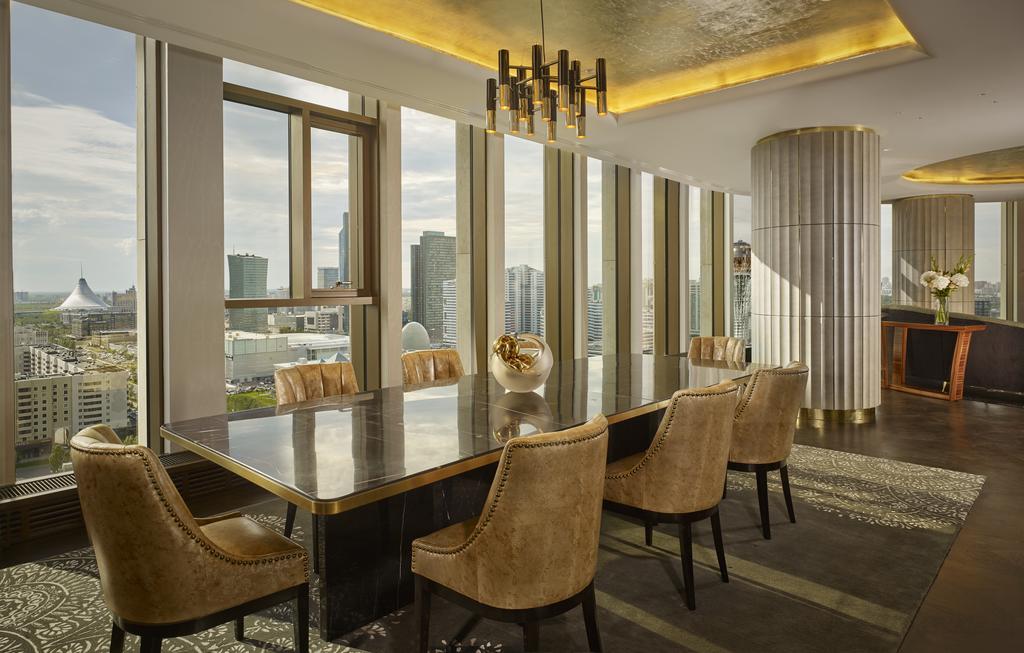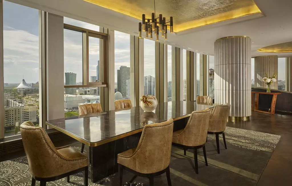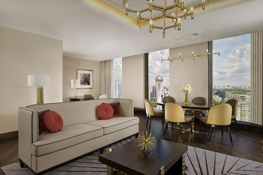The Ritz-Carlton, Astana - это просторные роскошные номера с видом на главные достопримечательности культурной и деловой части Астаны (экс-Нур-Султан), особая атмосфера гостеприимства и незабываемые ощущения комфорта, первоклассное обслуживание, ужин на фоне потрясающей панорамы, а также все возможности для полноценного отдыха, развлечений и деловой активности.