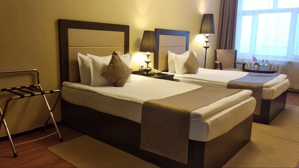 Этот отель расположен в центре города, в 10 минутах езды от железнодорожного вокзала города Алматы. К услугам гостей бесплатный Wi-Fi, крытый плавательный бассейн и номера, оснащенные кондиционером и телевизором с плоским экраном.