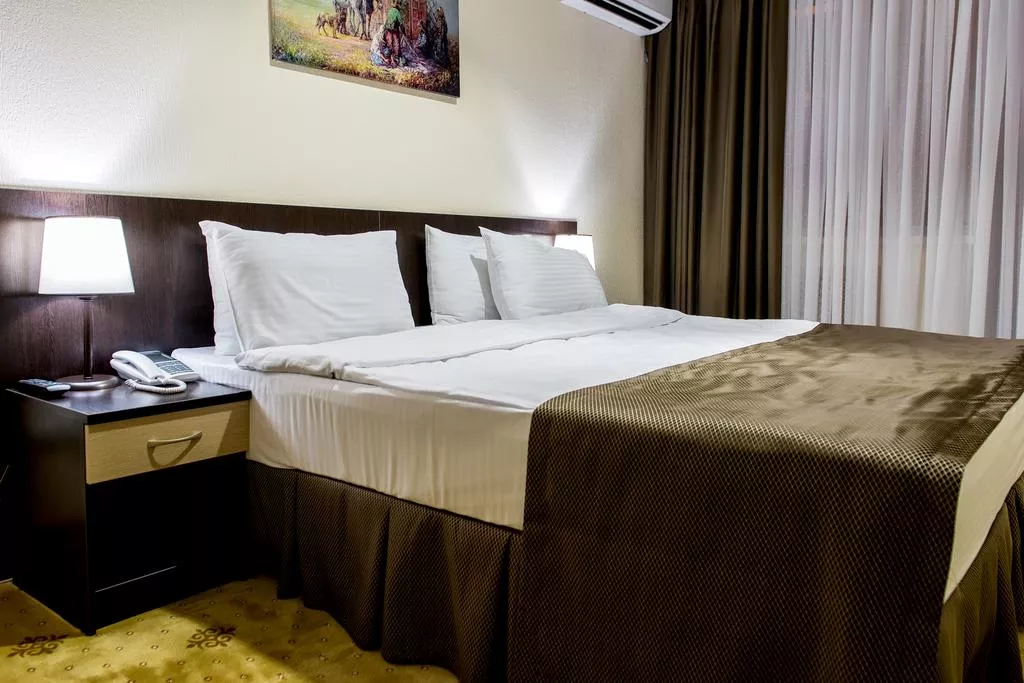The hotel complex includes 121 superior comfortable rooms of various categories; three conference rooms with a capacity of up to 150 people and equipped with modern technology, a gym, a beauty salon, two restaurants and a pub with their own brewery, and also from June 18, 2018, its FONTAN AQUAPARK (the guests of the Hotel have a gift certificate).