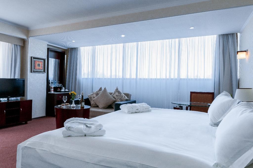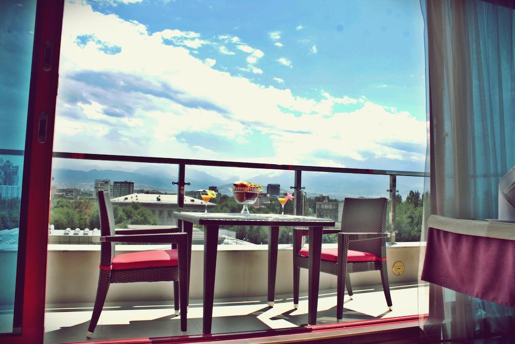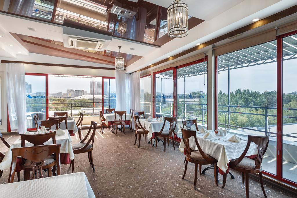 На 8 этаже отеля работает ресторан Khan Tengri, где подают блюда местной и европейской кухни. В лобби-баре можно отдохнуть и заказать напитки.