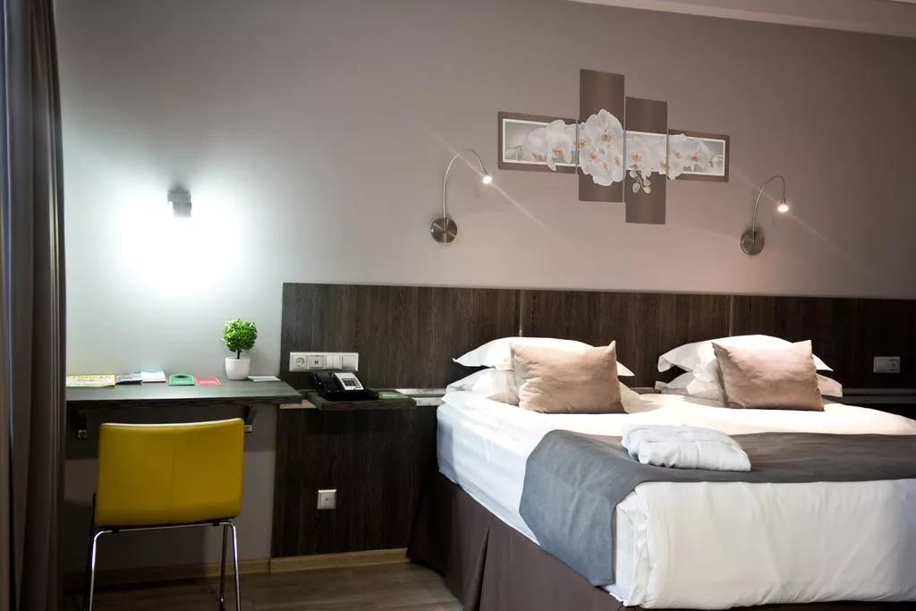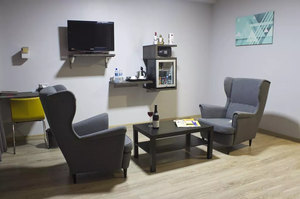 Современные номера отеля Smart Bishkek (Holiday) оформлены в теплых коричневых тонах и располагают французскими окнами. Номера оснащены телевизором с плоским экраном. Гости могут бесплатно смотреть фильмы.