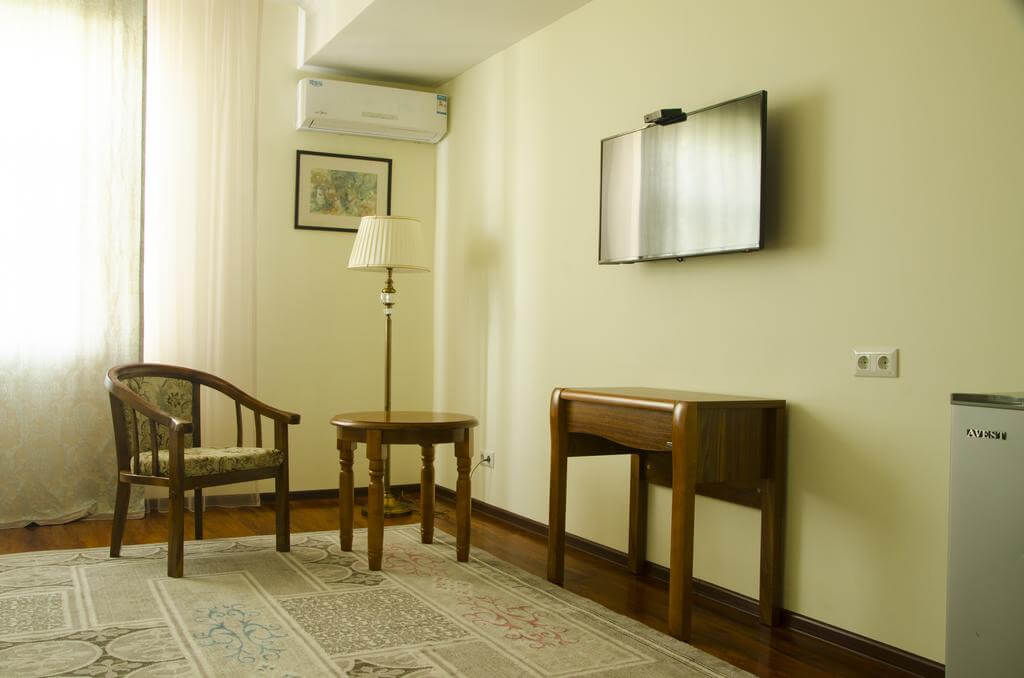 Каждый номер элегантно оформлен в классическом стиле и оснащен холодильником. В распоряжении гостей всех номеров чайник. В ванных комнатах предоставляется фен.