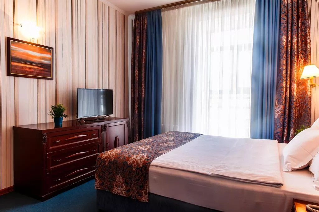 Отель имеет обширный номерной фонд, позволяющий единовременно разместить более 200 гостей. Комфортабельные номера различного класса, оснащенные бесплатным Wi-Fi интернетом, спутниковым телевидением, кондиционером, мини-баром, мини сейфом, телефоном с международной связью, располагают к отдыху и расслабления.
