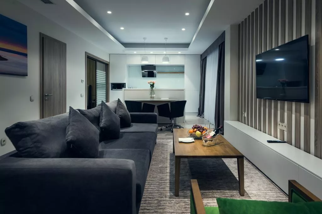 Номера оформлены в современном стиле. В распоряжении гостей кровать размера «king-size», письменный стол, телевизор с плоским экраном, сейф, гладильные принадлежности, высокотехнологичная система климат-контроля и бесплатные принадлежности для чая/кофе. Ванная комната отделана мрамором.