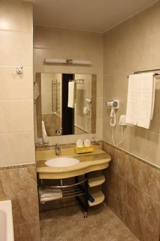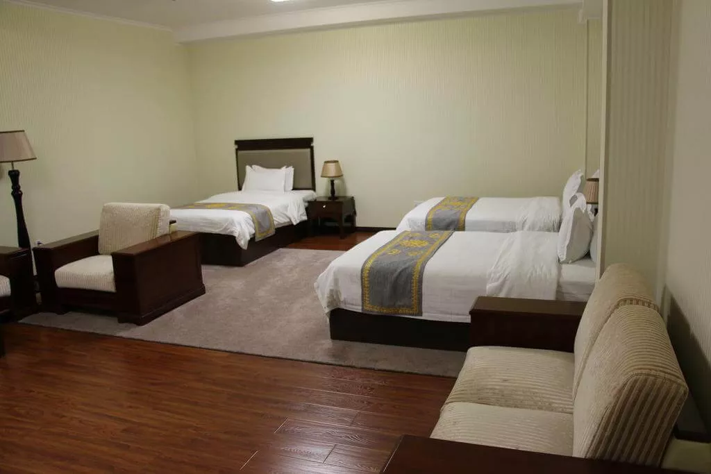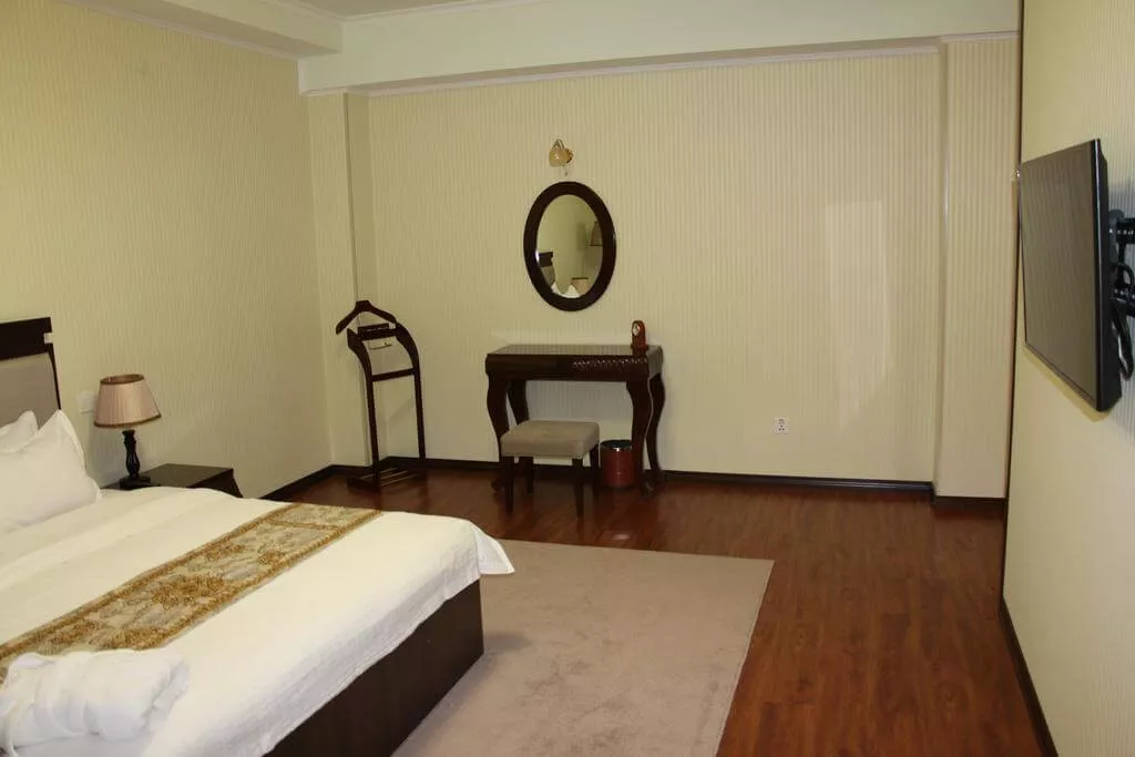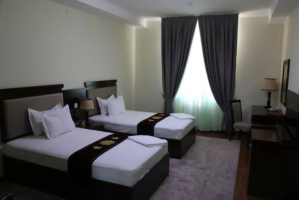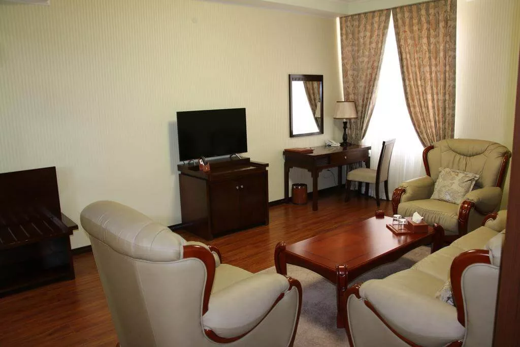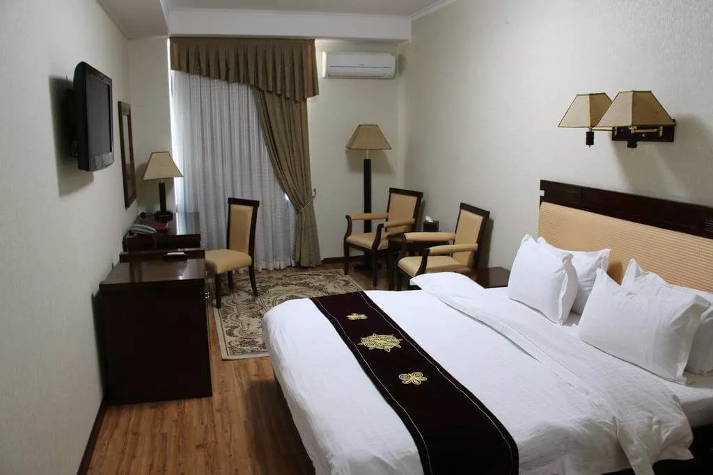 Каждый номер в отеле "Заргарон Плаза" оформлен в элегантном стиле с использованием красных и бежевых тонов. К вашим услугам мини-бар и ванная комната с ванной.