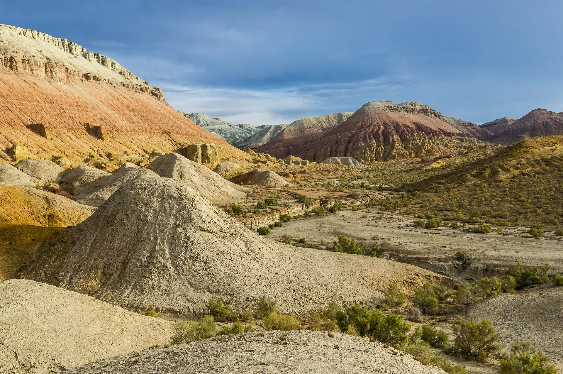 В данной местности большое количество представителей древних растений – основные объекты флоры региона. Склоны различных оттенков ярких красок, подверженных эрозии временем, создают редкое, необычное для глаз зрелище.