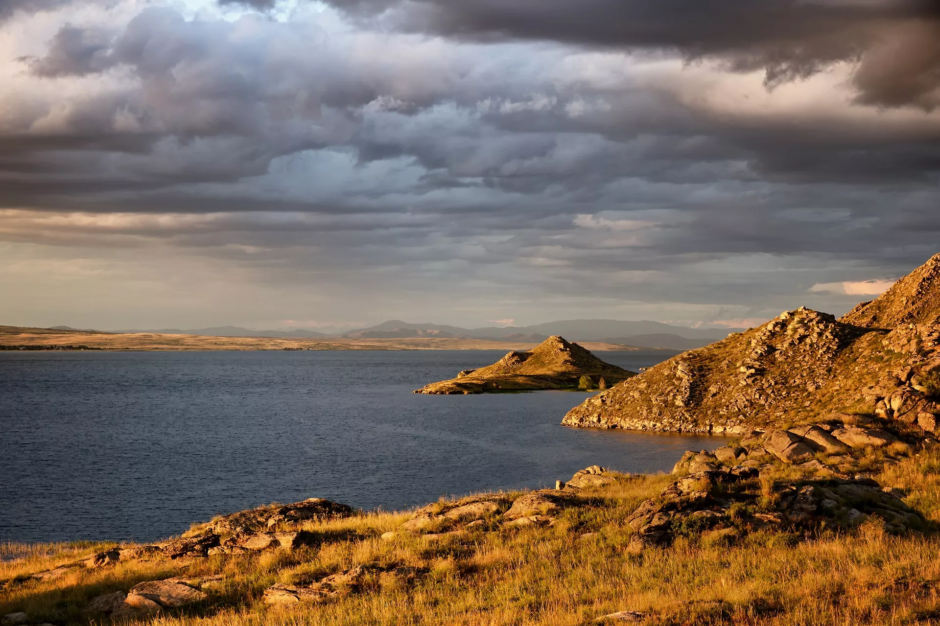 На востоке Казахстана, в 100 километрах от города Усть-Каменогорск, среди холмов раскинулась чаша голубой воды, обрамленная песчаными пляжами и зелеными склонами — Бухтарминское водохранилище, крупнейшее водохранилище страны и один из пяти крупнейших водоемов мира площадью 5500 кв.км.
